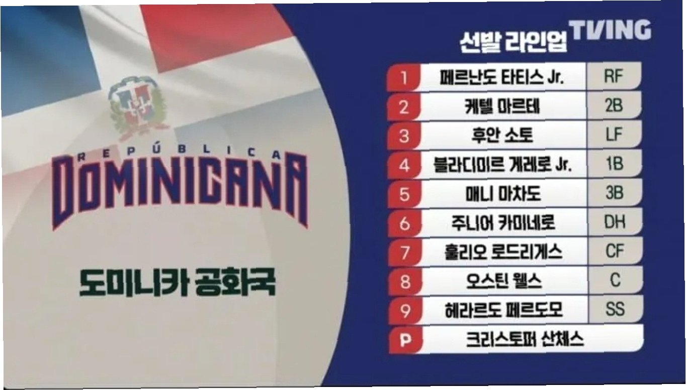 한국, 17년 만의 8강 진출, 이제는 도미니카공화국을 넘어야 한다17년 만에 월드베이스볼클래식(WBC) 8강 진출에 성공한 한국 야구 대표팀이 이제 '난적' 도미니카공화국을 상대합니다. 1라운드를 4전 전승으로 통과한 도미니카공화국의 가장 강력한 무기인 타선을 어떻게 잠재우느냐가 한국 마운드의 핵심 과제로 떠올랐습니다. 한국은 극적으로 8강 진출을 확정 지은 후, 결전지인 마이애미에 도착하여 훈련에 매진하고 있습니다. 메이저리그 올스타급 타선, '거를 타선이 없다'도미니카공화국은 말 그대로 '타격의 팀'입니다. 페르난도 타티스 주니어, 매니 마차도, 블라디미르 게레로 주니어, 후안 소토 등 메이저리그를 대표하는 강타자들이 즐비하며, MLB 올스타급 선수들로 구성되어 있어 '거를 타선이 없다'는 평..