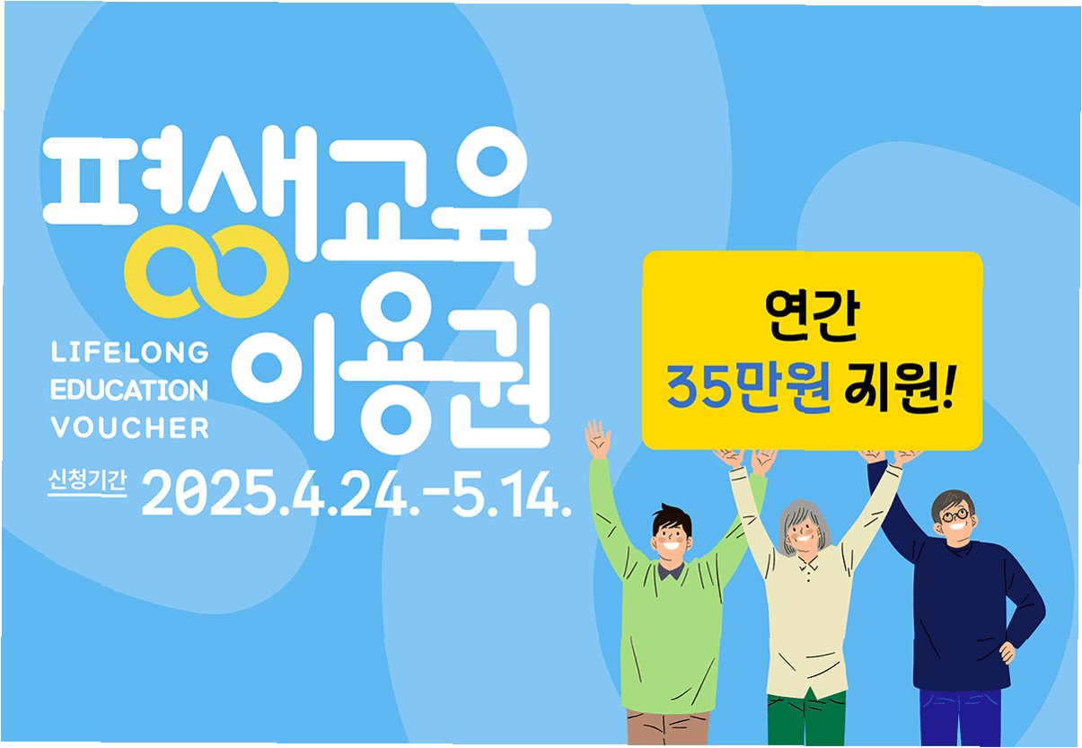 나라가 주는 35만 원, 알고 계셨나요?정부와 지자체에서 국민의 평생교육 참여 기회를 확대하고 역량 개발을 지원하기 위해 연간 1인당 35만 원의 교육비를 지원하는 '평생교육이용권' 제도를 운영합니다. 이 지원금은 단순한 배움의 기회를 넘어, 자격증 취득, 어학 능력 향상, AI 및 디지털 교육 등 실질적인 재취업, 부업, 디지털 전환과 연결될 수 있는 다양한 강좌에 활용 가능합니다. 예를 들어, 73세 수강생은 지게차 면허 취득에 성공했으며, 34세 직장인은 디지털 굿즈 제작을 통해 플랫폼 판매를 목표로 하고 있습니다. 이는 경제적 부담 때문에 망설였던 교육을 시작할 수 있는 종잣돈 역할을 하며, 청년층의 자기 계발, 직장인의 역량 강화, 노년층의 재취업 준비에 큰 도움을 줄 수 있습니다. 누가 ..