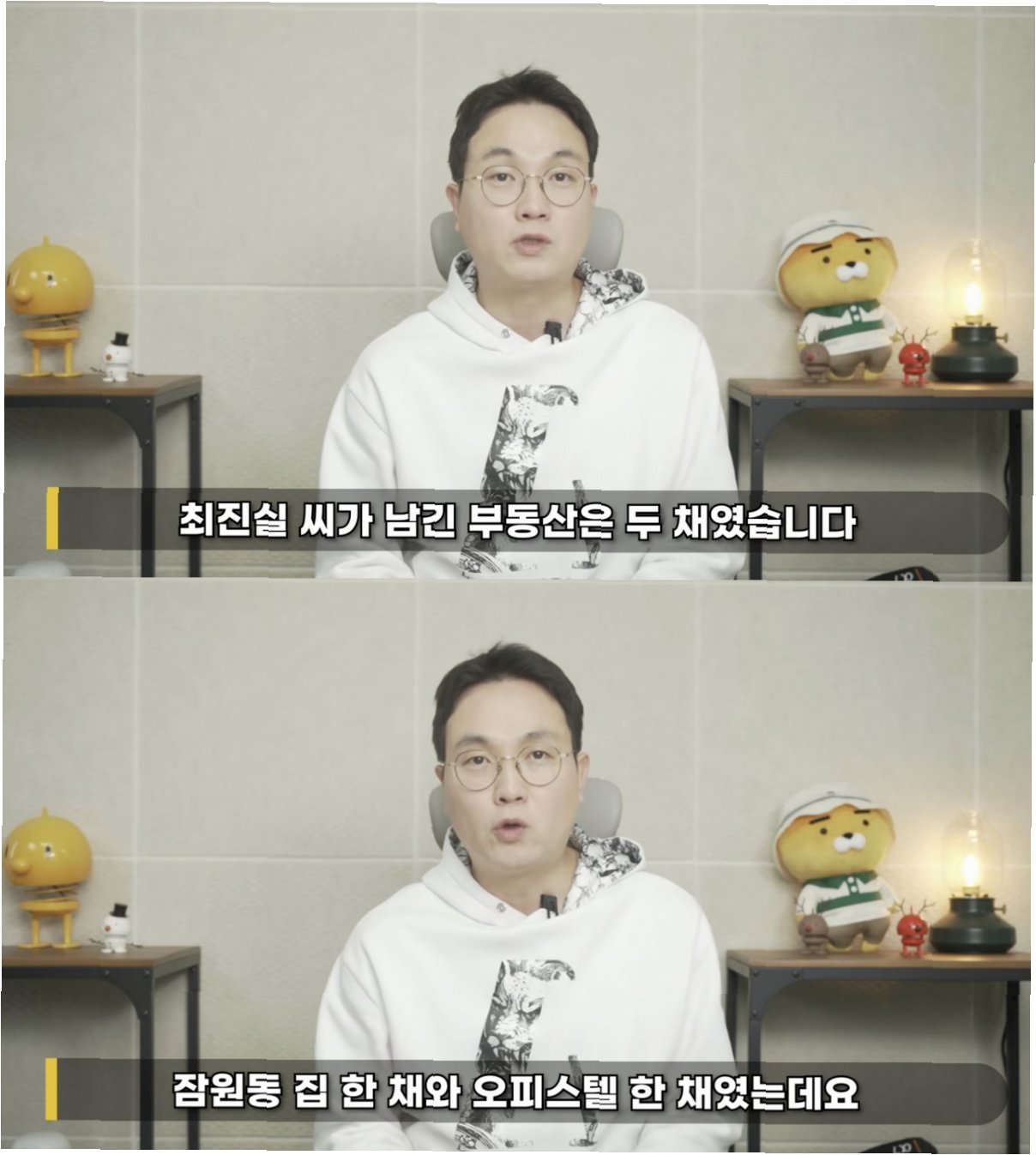 A.최진실 씨가 남긴 잠원동 주택과 오피스텔 두 채는 아들 최환희 군과 딸 최준희 양에게 각각 50%씩 상속되었습니다. 현재 임대 수익 역시 두 자녀에게 돌아가고 있습니다.