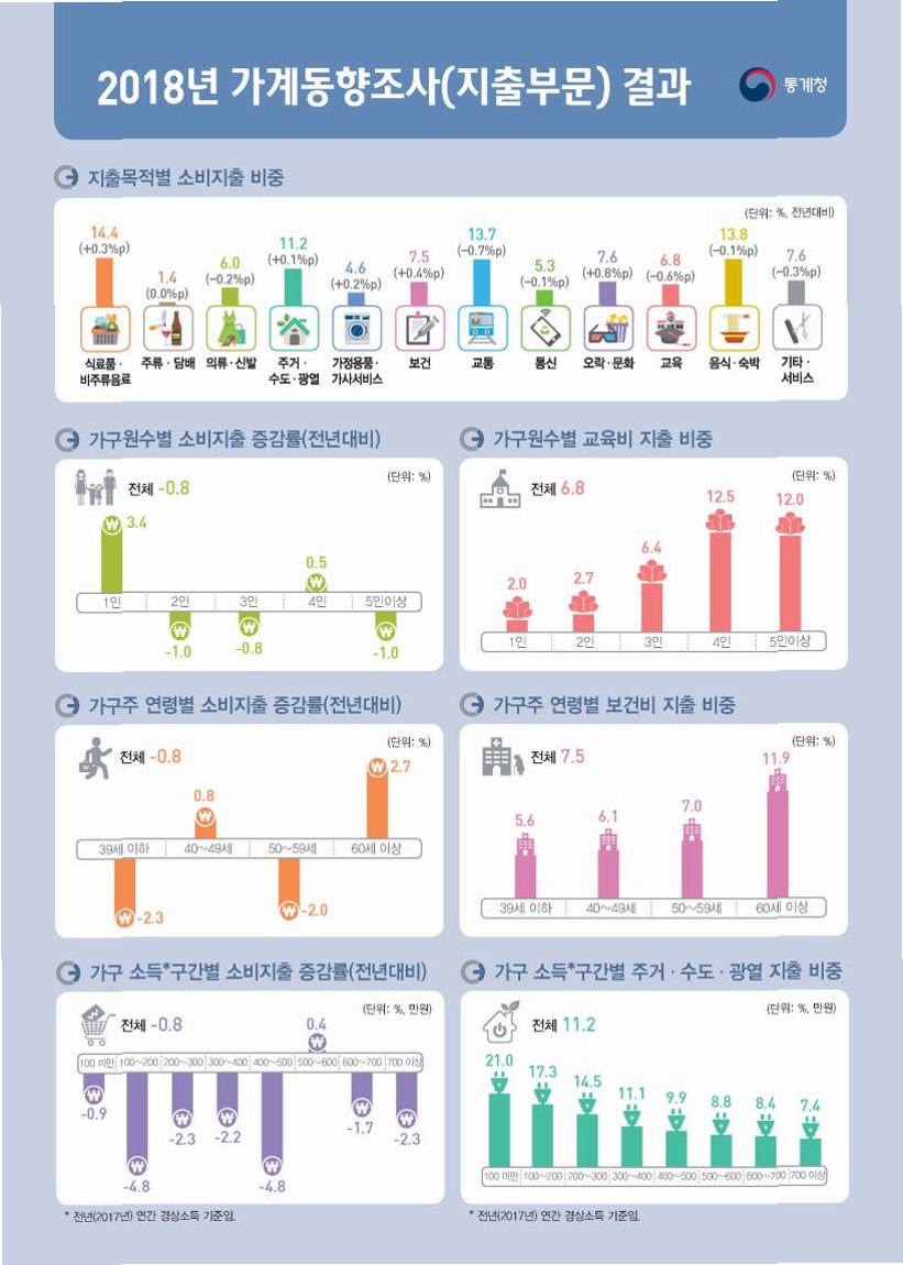 하지만 가구당 월평균 지출은 400만2000원으로 전년 대비 0.7% 증가하는 데 그쳤다.