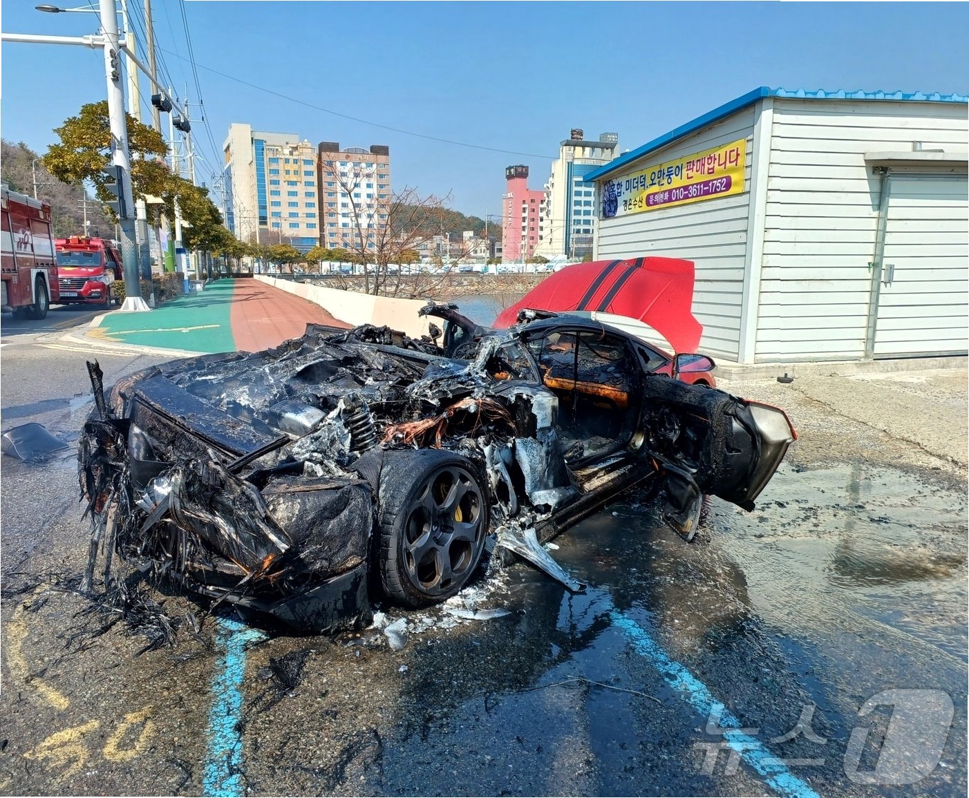 강남 한복판, 람보르기니에 불이 붙다