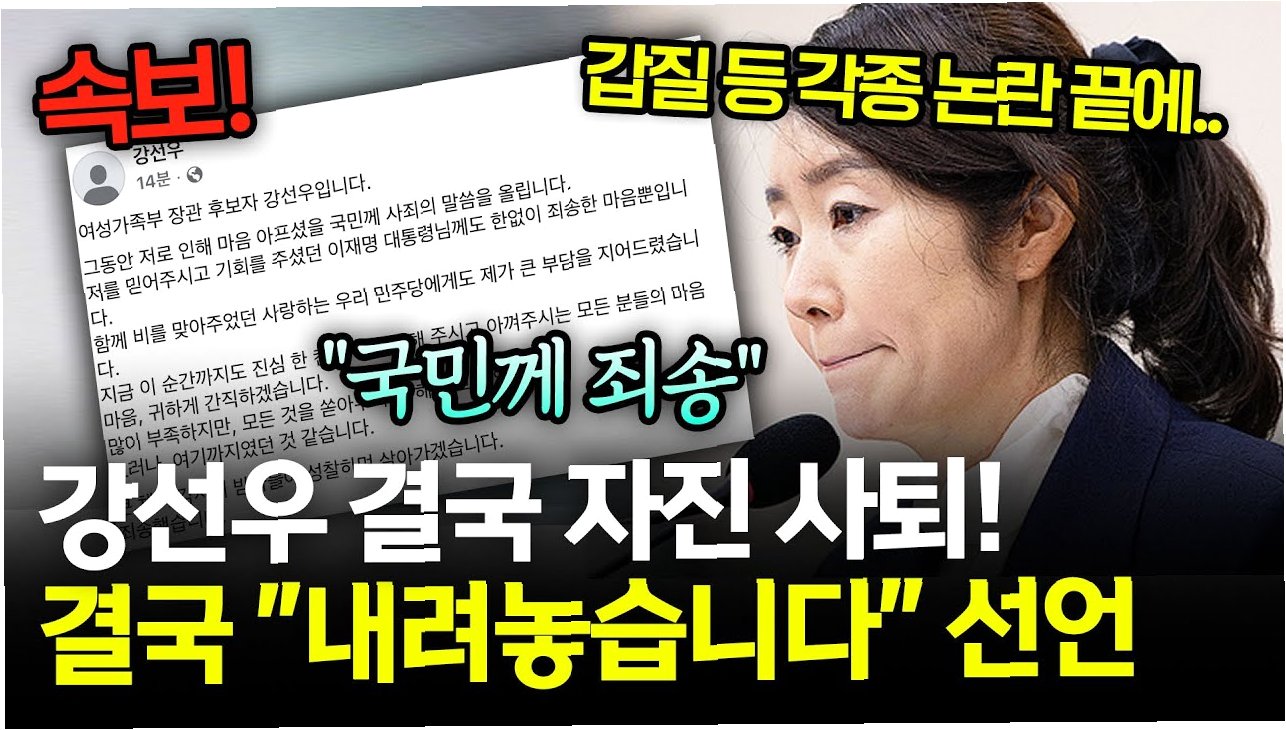 A.강선우 후보자의 '갑질 의혹'과 관련하여, 정영애 전 장관의 폭로가 결정적인 영향을 미치고 있습니다.