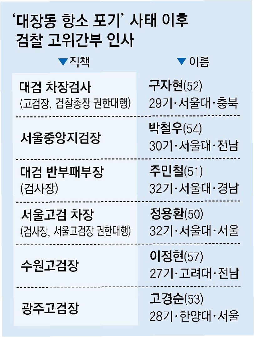 검찰 안팎에선 결국 '대장동 항소 포기 반발로 눈밖에 난 검사장들을 본보기로 찍어낸 것'이라는 평이 나온다.