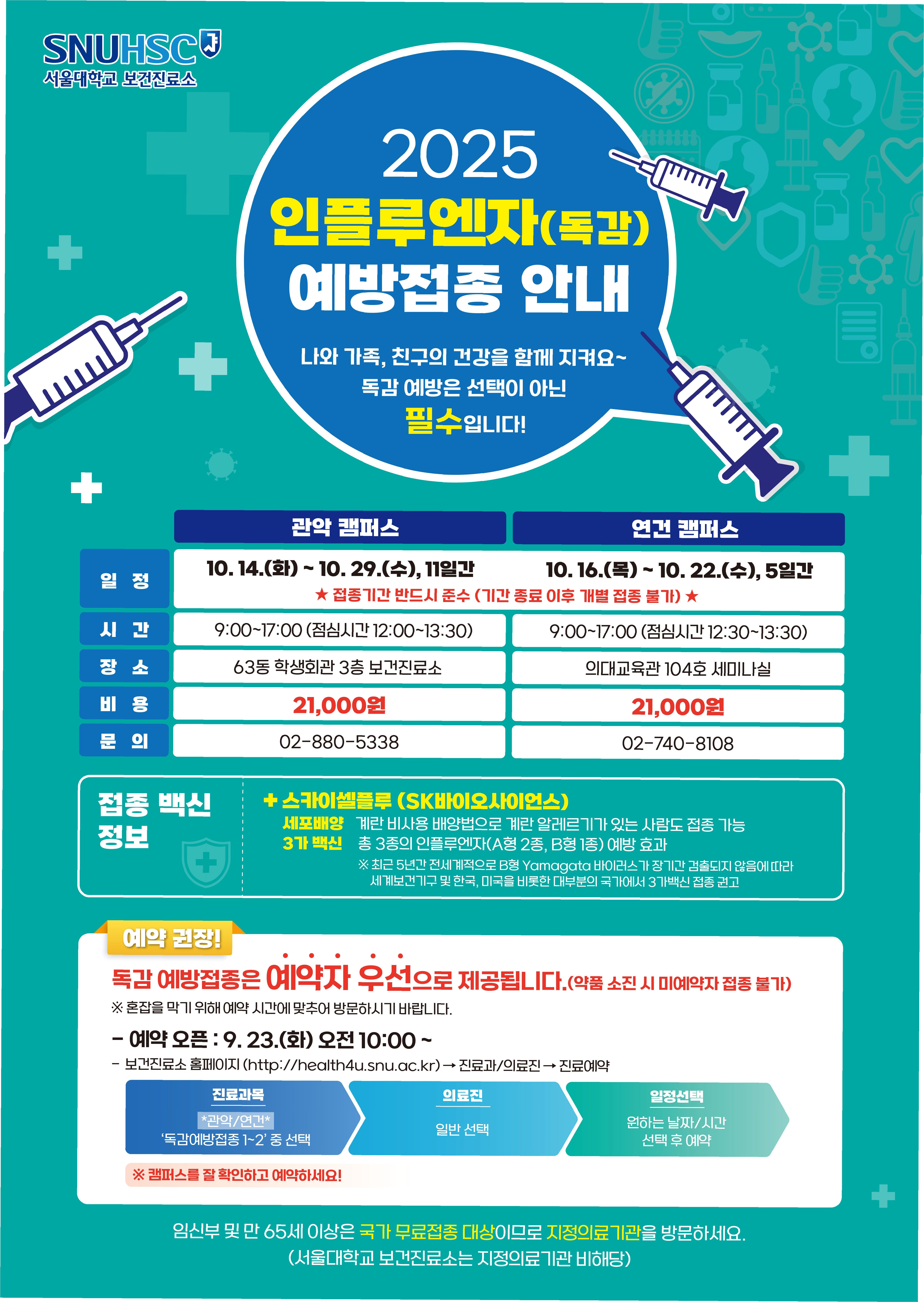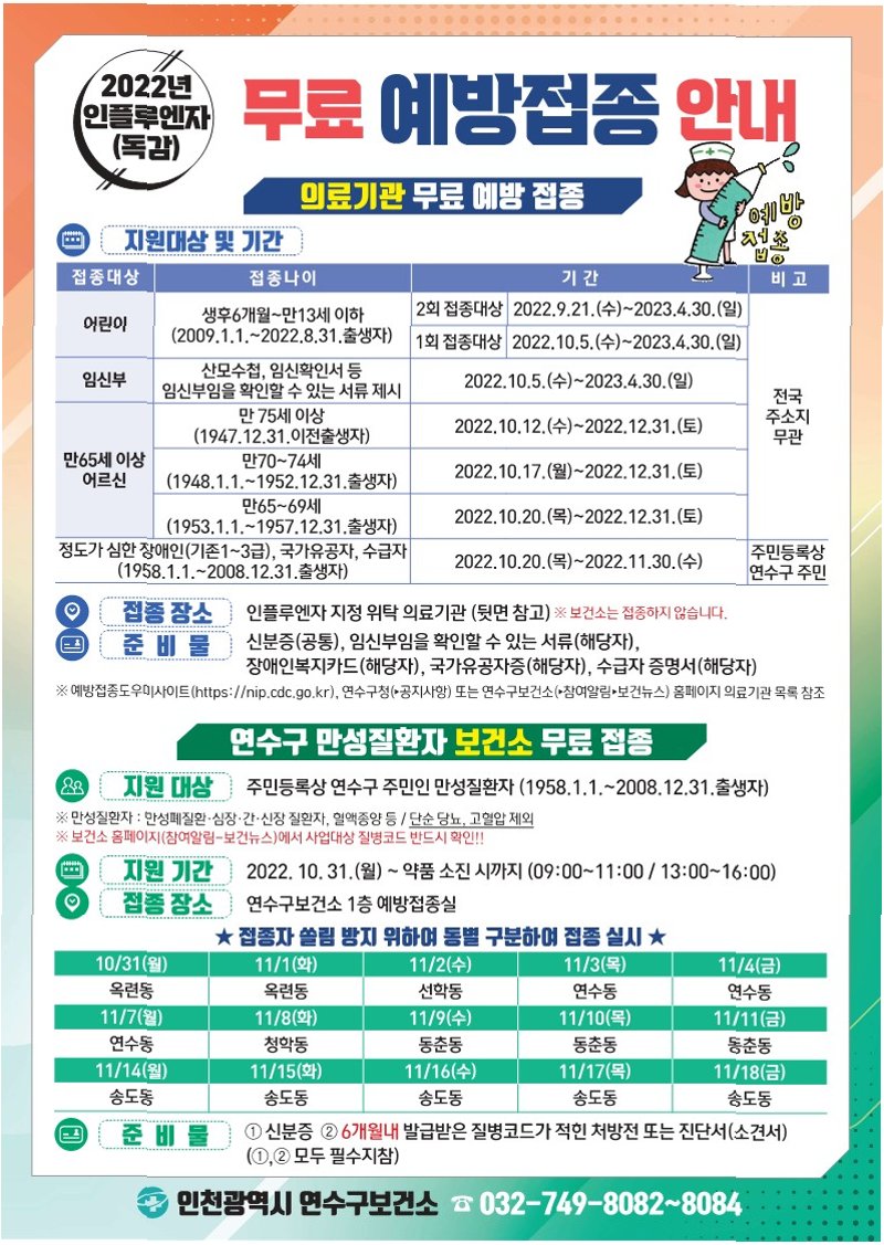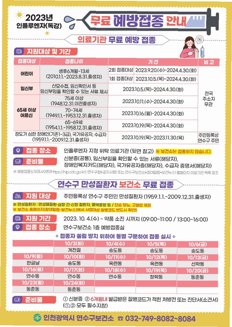 무료 접종 대상 및 접종 방법 안내