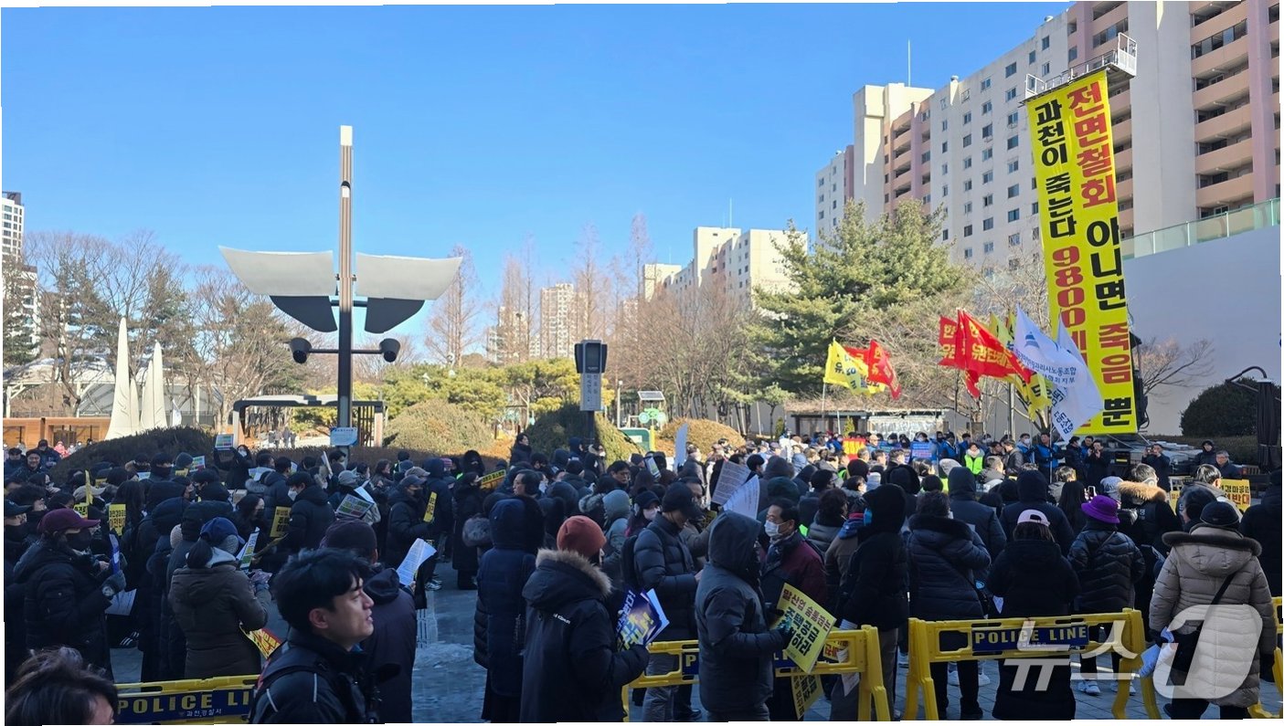 정부가 발표한 도심 주택 공급 확대 방안에 대해 과천 시민들과 한국마사회 노동조합원들이 강력히 반대하며 집회를 열었습니다. 특히 과천 경마공원 부지에 주택을 공급하겠다는 계획에 대해 주민 동의 없는 개발이라며 철회를 요구하고 있습니다. 이번 집회에는 1천여 명의 시민과 관계자들이 참여하여 정부 정책에 대한 불만을 표출했습니다.