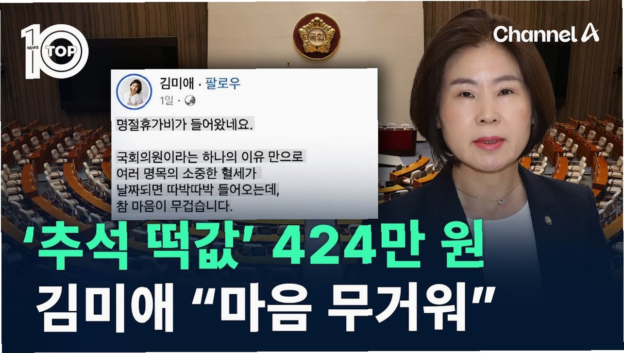 국회의원들이 설 명절을 맞아 1인당 439만 6560원의 명절 보너스를 받는다는 사실이 알려지면서 국민적 공분이 일고 있습니다. 김미애 국민의힘 의원은 이러한 상황에 대해 '정말 면목없다'며 국민들의 분노가 크다고 공감했습니다. 주가 상승에도 불구하고 국민들의 삶이 여전히 힘들다는 점을 지적하며, 민생 현장에서 고개를 들기 어렵다고 토로했습니다. 특히 '떡값'이라는 표현에 씁쓸함을 표하며, 편안하게 명절 휴가비를 사용할 수 있는 날이 오기를 바란다고 전했습니다.