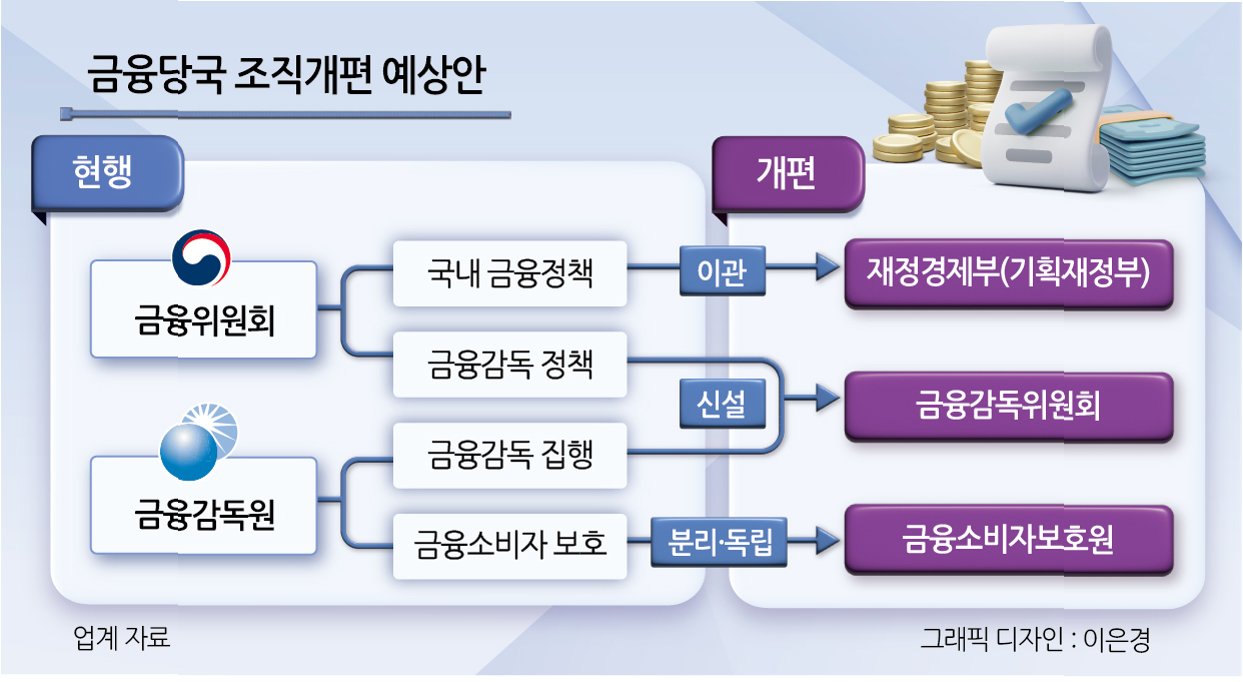 금융위원회가 2008년 이후 17년 만에 금융감독위원회(금감위) 체제로 복귀하면서, 금융 담당 조직이 '금융위-금감위-금감원-금융소비자보호원(금소원)'의 4개 체제로 확대 개편될 예정입니다. 이는 금융 소비자 보호를 강화하려는 정부의 의지를 보여주는 조치로 풀이됩니다. 하지만 이러한 변화에 대해 금감원 내부, 특히 젊은 직원들을 중심으로 강한 반발이 일고 있습니다.