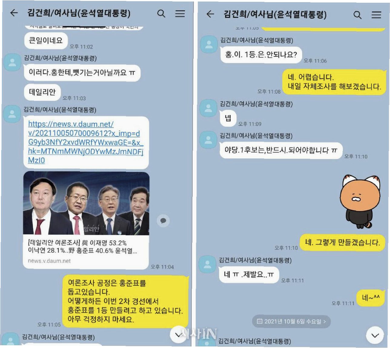 공개된 텔레그램 대화 내용: '브이'와 '영부인'의 은밀한 소통