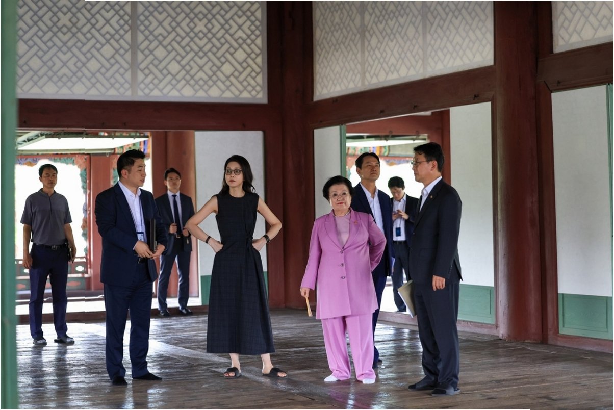 국회 문화체육관광위원회 국정감사에서는 김 여사가 경복궁 근정전 안에서 용상에 앉았던 사실이 드러났습니다. 국가유산청은 이 사실을 확인했으며, 양문석 의원은 당시 촬영된 사진을 공개했습니다. 경복궁관리소의 '상황실 관리 일지'에 따르면, 김 여사는 정기 휴궁일인 화요일에 약 두 시간 동안 근정전, 경회루, 흥복전 등을 둘러봤습니다.