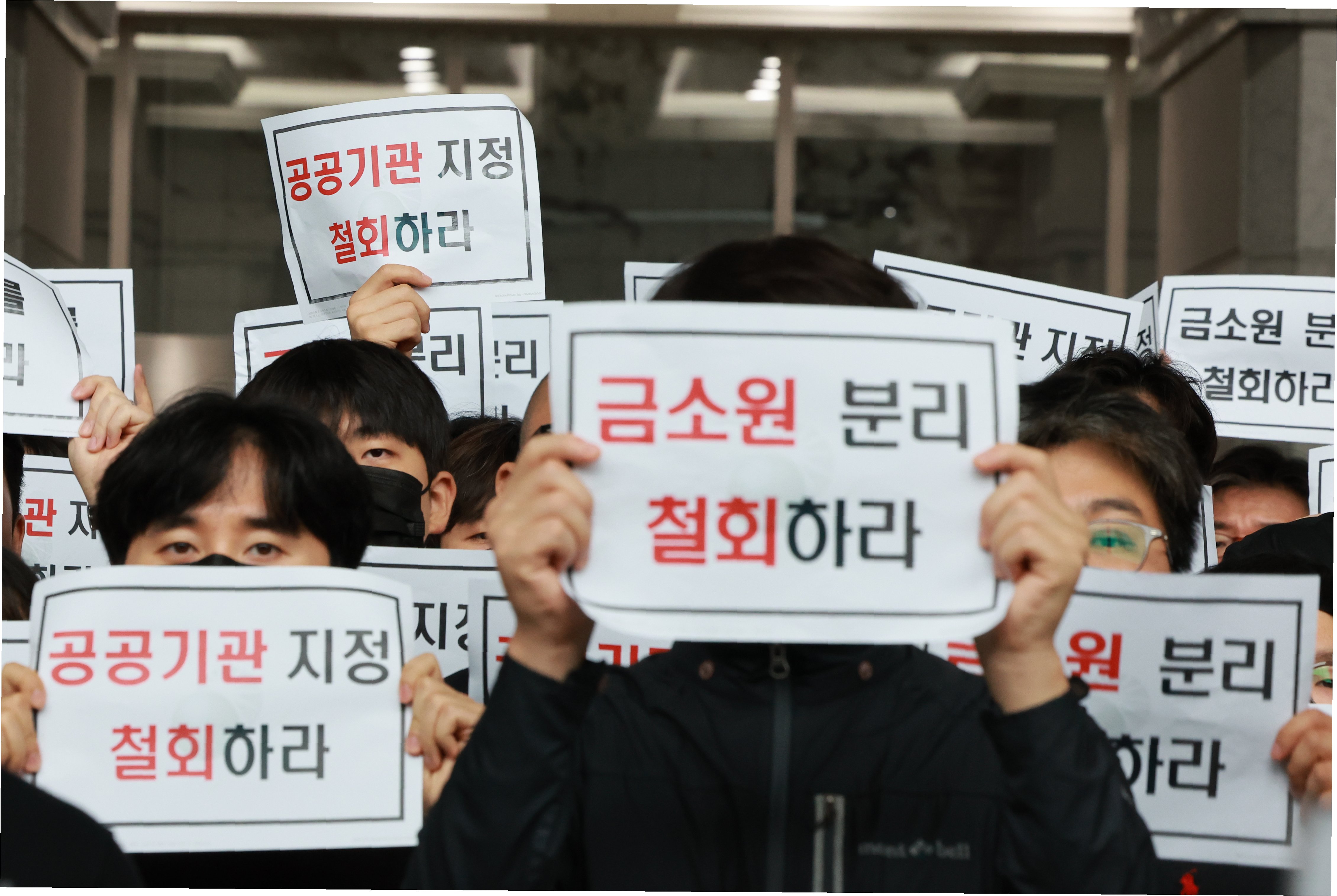 금감원 직원들은 정부의 조직 개편 발표 이후, 금융소비자원 분리와 공공기관 지정 철회를 요구하며 강력하게 반발하고 있습니다. 700여 명의 직원들은 지난 8일부터 상복을 입고 금감원 로비 1층에서 출근길 시위를 이어가고 있으며, 정문 출입구에는 조직 분리를 반대하는 직원들의 명패 수백 개가 깔렸습니다. 또한, ‘금융소비자 보호가 운명을 다했다’는 내용의 대형 현수막을 내걸며 조직 개편에 대한 반대 의사를 분명히 했습니다.