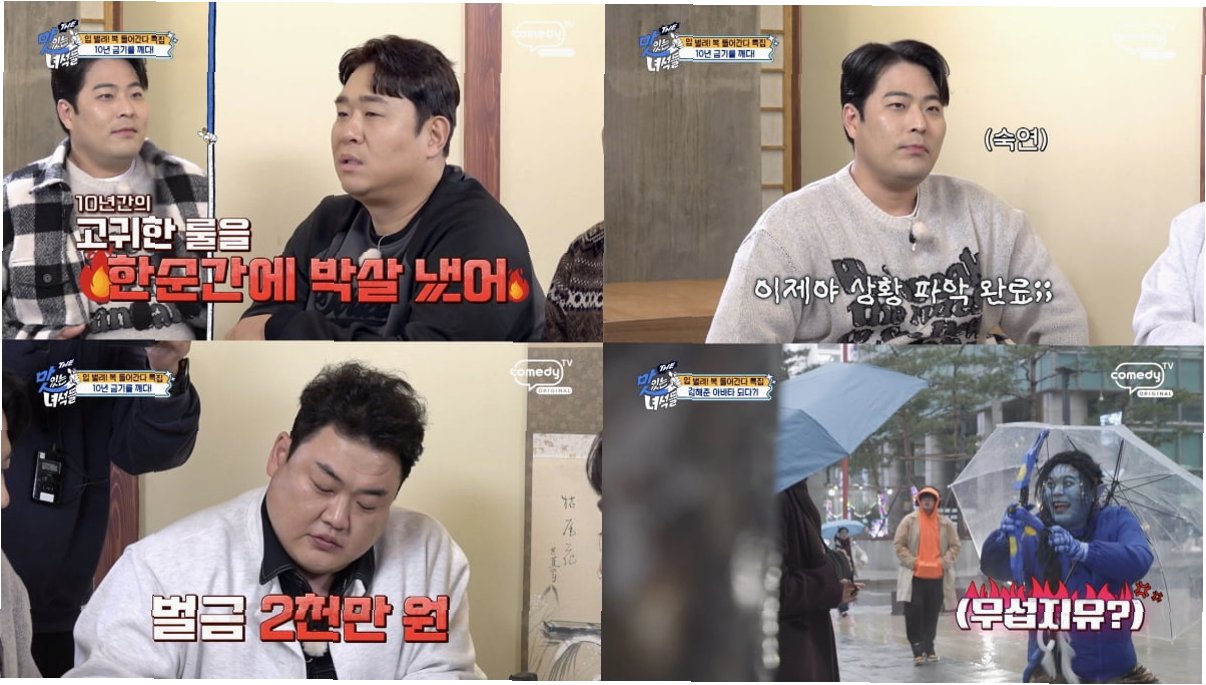 지난 9일 방송된 코미디TV 예능 'THE 맛있는 녀석들'에서 김해준은 '한입만' 규칙을 어긴 것이 발각되었습니다. 제작진은 '김해준이 10년간 지켜온 '한입만' 규칙을 깼다', '그냥 넘어갈 수 없다'며 엄중한 태도를 보였습니다. 문세윤은 김해준에게 '우리가 10년간 지켜온 고귀한 룰을 네가 한순간에 깨버렸다'고 일침을 가했고, 황제성 역시 '그냥 넘어갈 일이 아니다'라며 사태의 심각성을 강조했습니다.