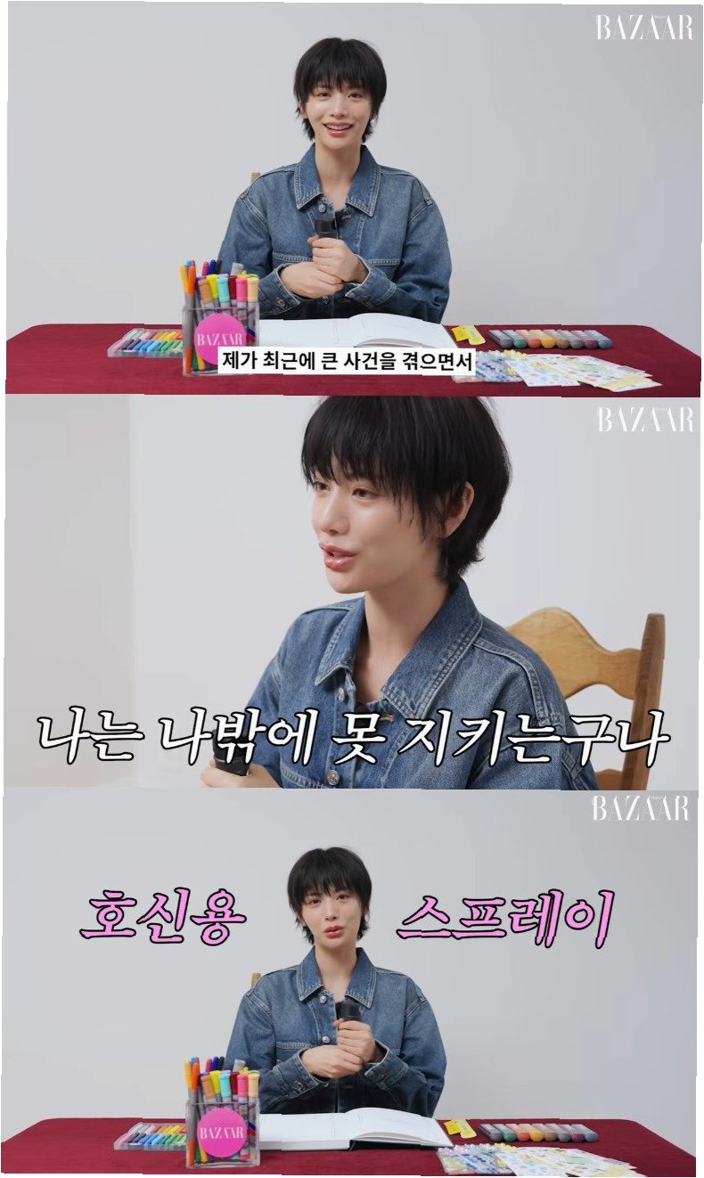그룹 애프터스쿨 출신 배우 나나가 최근 겪은 강도 피해를 언급하며 ‘호신용 스프레이’를 가지고 다닌다고 밝혔다. 17일 유튜브 채널 ‘하퍼스 바자 코리아’에는 “요즘 나나의 모든 것, 최근 시작한 관리부터 힐링 루틴 꽂힌 아이템까지!”라는 제목의 영상이 공개됐다. 영상 속 나나는 팬들에게 추천하고 싶은 아이템으로 ‘호신용 스프레이’를 꼽았다.