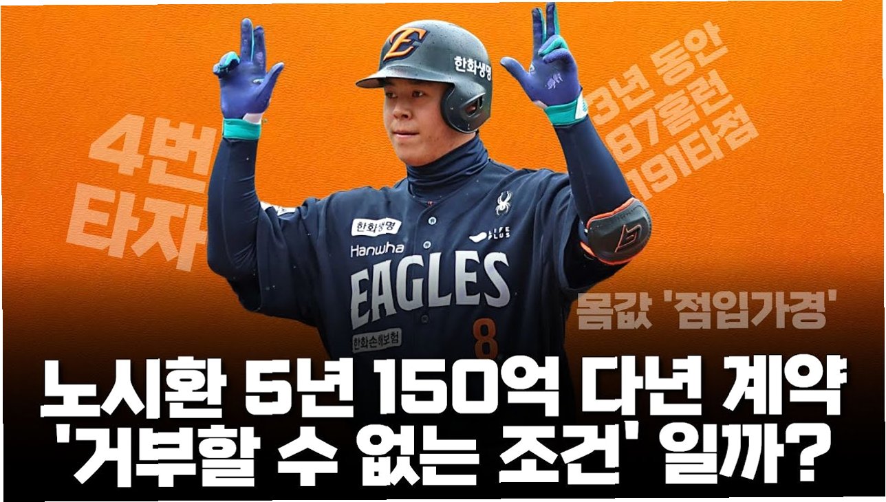 노시환 선수가 한화 이글스와 약 150억 원 규모의 대형 계약을 눈앞에 두고 있습니다. 이는 KBO리그 역대 최연소 비FA 다년 계약 기록을 경신하는 것이며, 팀의 핵심 선수인 노시환을 붙잡아 전력 강화에 기여할 것입니다. 노시환 선수는 KBO리그 최고의 타자가 된 후 해외 진출을 고려하겠다는 입장을 밝혔으며, 팬들은 그의 활약과 미래에 대한 기대감을 높이고 있습니다.