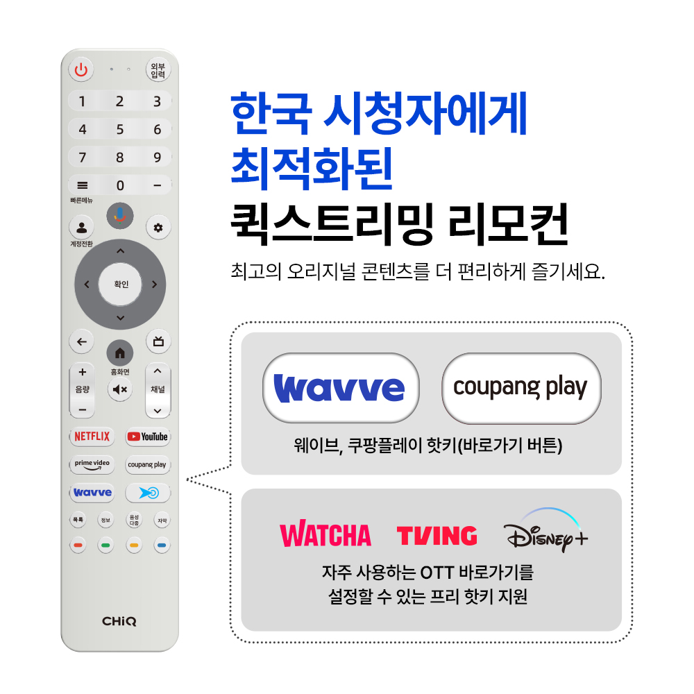 구글 스마트 TV 쿠팡플레이 핫키 리모컨 내장 앱설치 크롬캐스트 미라캐스트 미러링 블루투스 구글어시스턴트 등 다양한 스마트 기능 지원 유튜브 넷플릭스 등 OTT 서비스 이용 가능합니다.