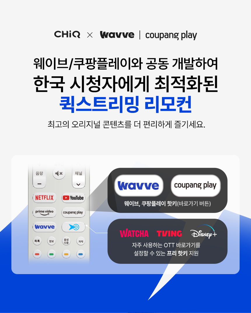 구글 스마트 TV 쿠팡플레이 핫키 리모컨 내장 앱설치 크롬캐스트 미라캐스트 미러링 블루투스 구글어시스턴트 등 다양한 스마트 기능 지원 유튜브 넷플릭스 등 OTT 서비스 이용 가능합니다.