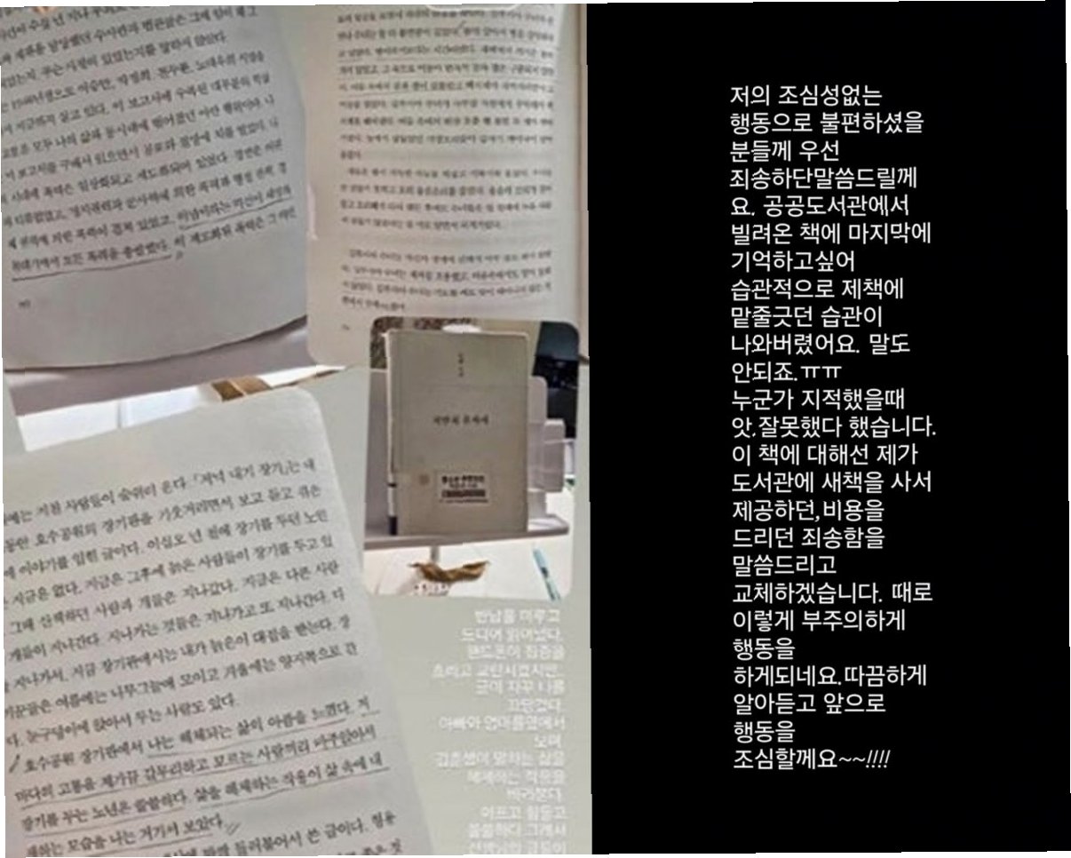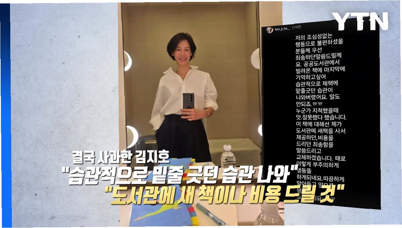 배우 김지호 씨가 공공 도서관에서 빌린 책에 밑줄을 그은 사실이 알려지면서 큰 파장을 일으키고 있습니다. 자신의 SNS를 통해 "조심성 없는 행동으로 불편하셨을 분들께 죄송하다"는 사과문을 올렸지만, 과거 예능 프로그램에서의 발언까지 재조명되며 온라인상에서 뜨거운 갑론을박이 이어지고 있습니다. 김지호 씨는 "제 책에 하던 습관대로 무심코 밑줄을 긋고 말았다"고 해명하며, 새 책을 구입하거나 비용을 지불하는 등 책임을 다하겠다고 밝혔습니다.