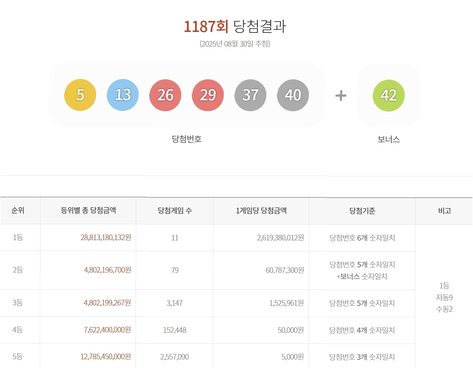 1187회 로또, 1등 11명 탄생… 억대 당첨금의 주인공은?