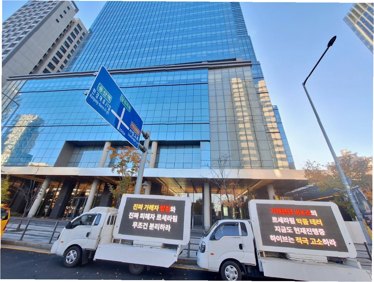 시위 트럭에는 르세라핌 팬덤의 절박한 심정을 대변하는 문구들이 담겨 있었습니다. '진짜 가해자 팥쥐와 진짜 피해자 르세라핌 무조건 분리하라', '가해 팬덤 버X즈의 르세라핌 악플 테러 지금도 현재 진행 중 하이브는 적극 고소하라', '대퓨님이 미룬 데뷔 순서 애먼 르세라핌에 화풀이? 이게 진짜 직장 내 괴롭힘', '법정에서도 거짓말 르세라핌 음해한 X진스 하이브는 반드시 분리하라' 등의 문구는, 르세라핌이 그동안 겪어온 고통과, 팬들이 느끼는 분노를 여실히 드러냅니다. 이는 단순히 그룹 간의 갈등을 넘어, 아티스트 보호와 공정한 대우를 촉구하는 팬들의 간절한 외침으로 해석될 수 있습니다.