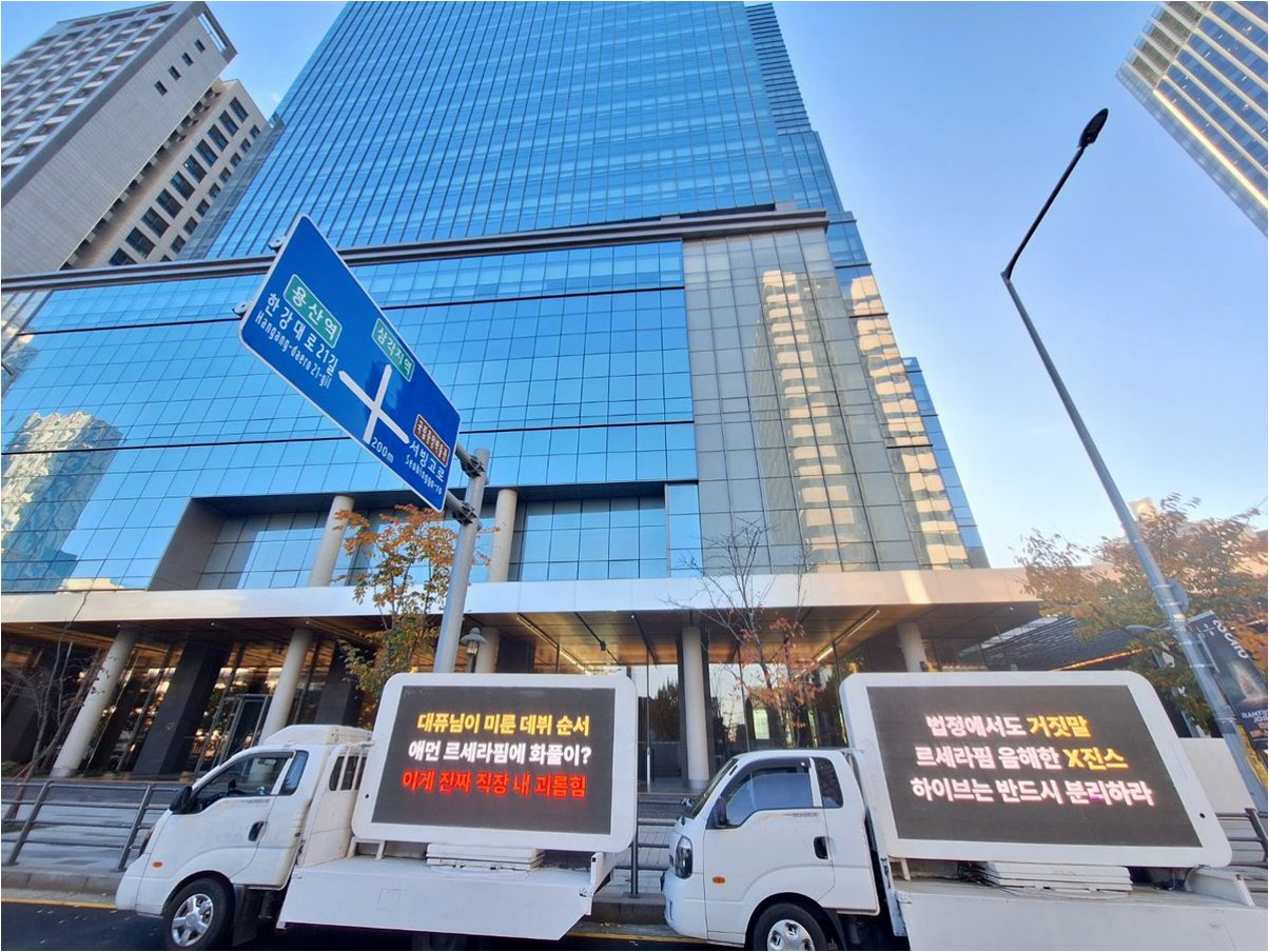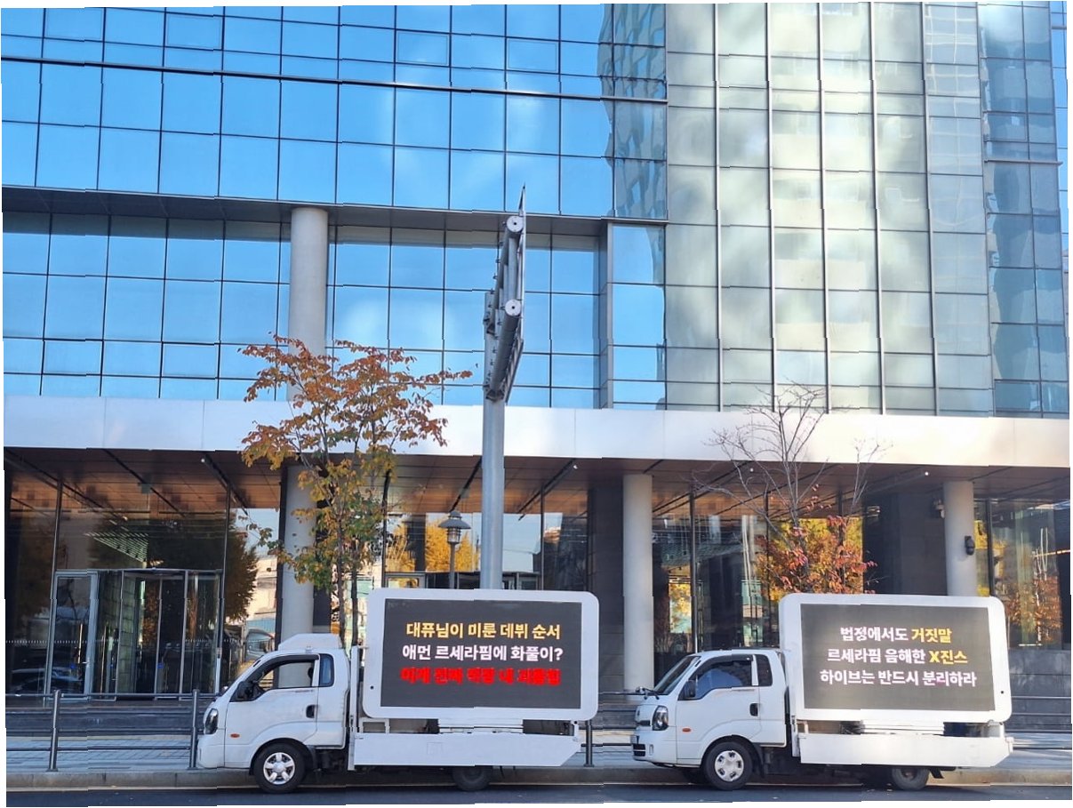 하이브 사옥 앞, 르세라핌 팬덤의 분노