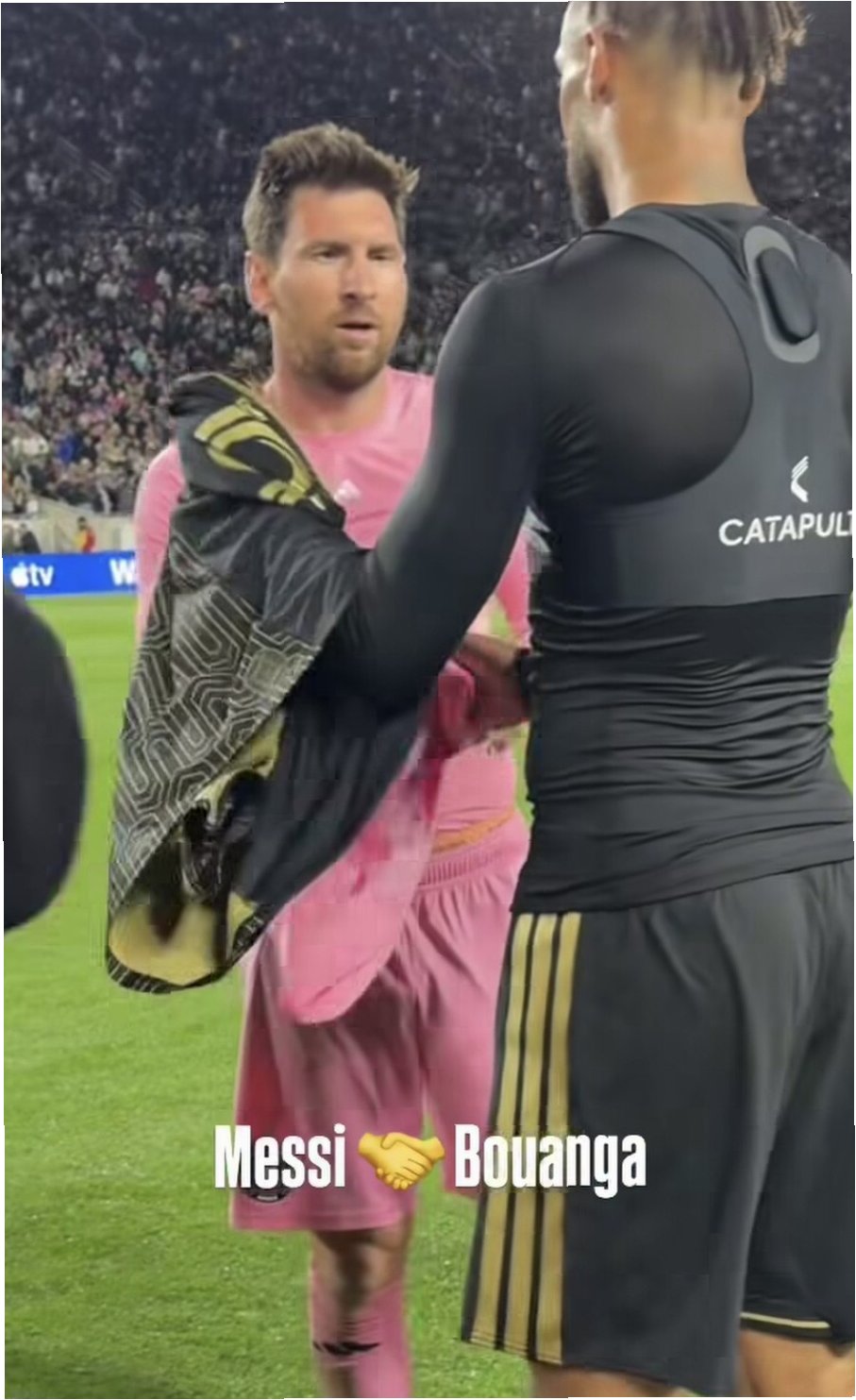 A.드니 부앙가는 LAFC 소속 공격수로, 아들이 메시의 유니폼을 갖고 싶어 하는 마음에 메시에게 유니폼 교환을 요청했습니다.