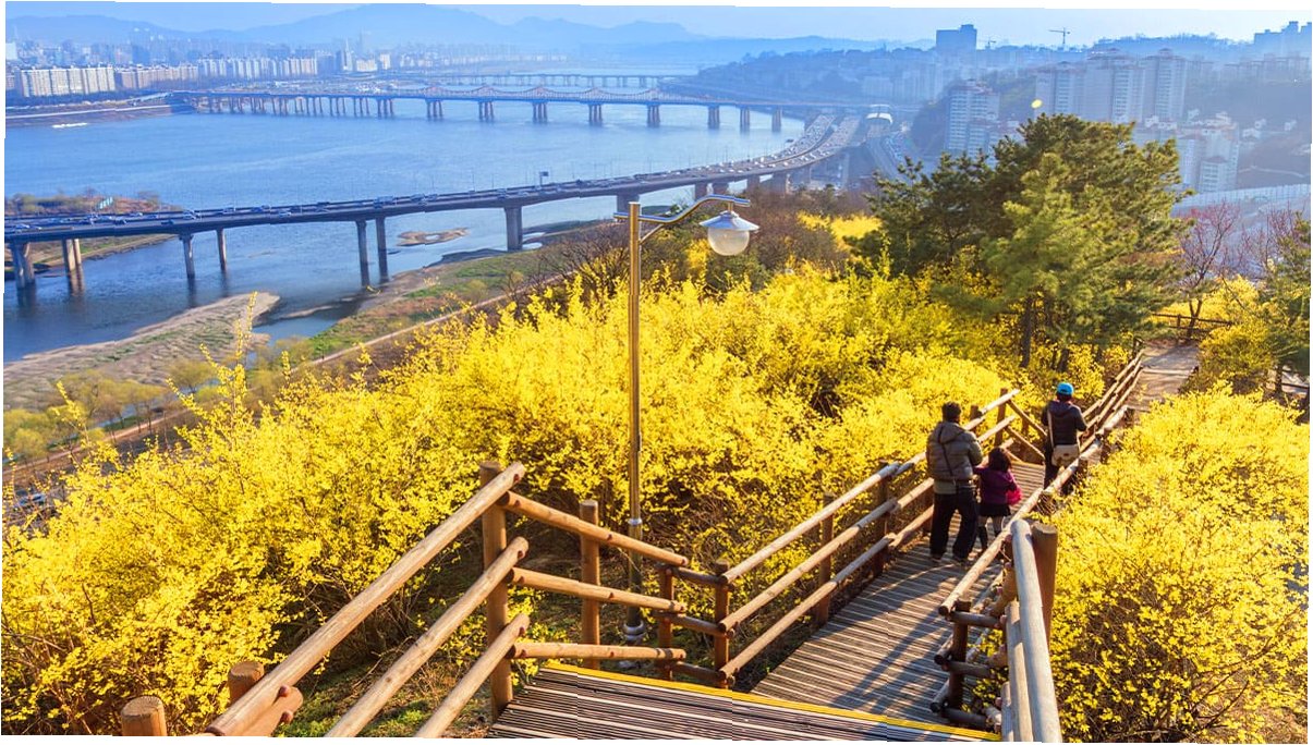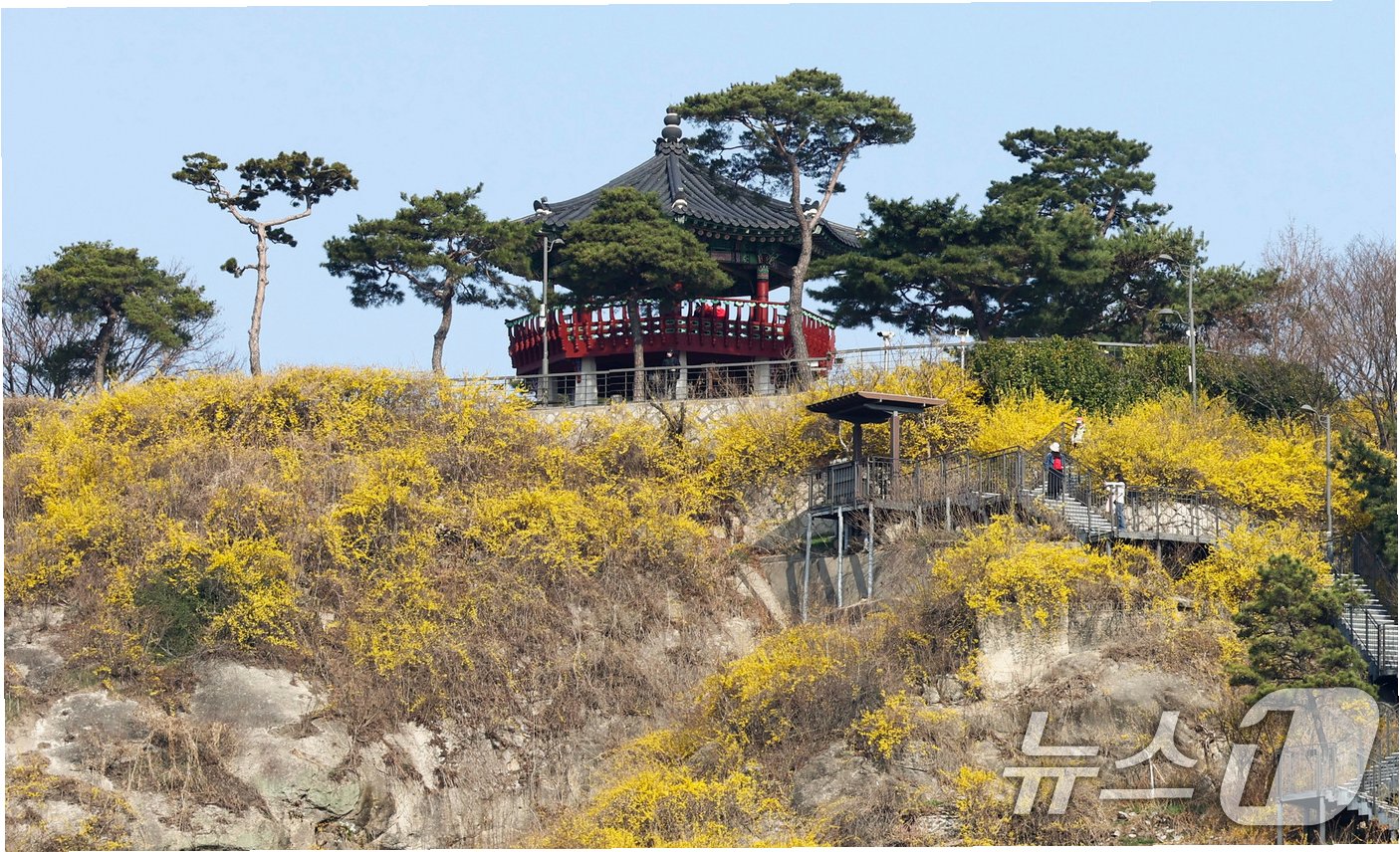 노란 개나리로 물든 응봉산, 봄의 전령사