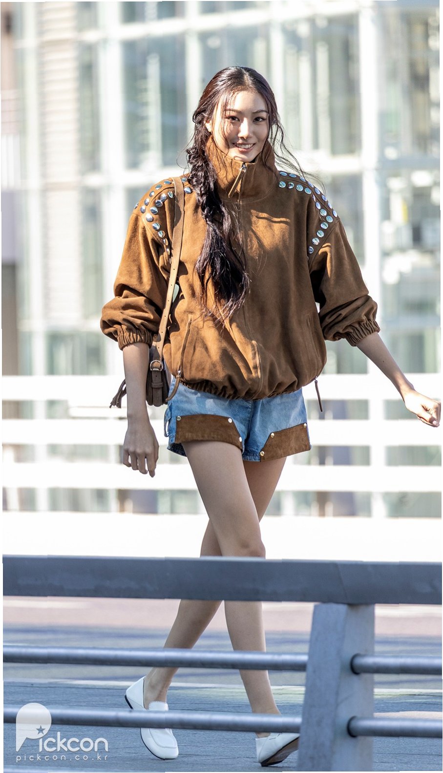 걸그룹 미야오의 멤버 가원이 최근 출국길에 착용한 갈색 스웨이드 투피스가 큰 주목을 받았습니다. 173cm의 큰 키를 자랑하는 그녀는 프랑스 브랜드 산드로(SANDRO)의 스웨이드 재킷과 쇼츠, 그리고 가방으로 프렌치 시크 스타일을 완벽하게 소화했습니다. 특히 어깨의 메탈 스터드 장식이 돋보이는 재킷과 스웨이드 패치가 더해진 데님 쇼츠는 그녀의 세련된 감각을 드러냈습니다. 이 패션은 파리에서 열린 '산드로 26FW 컬렉션 프리뷰' 참석을 위해 연출된 것으로 알려졌습니다.
