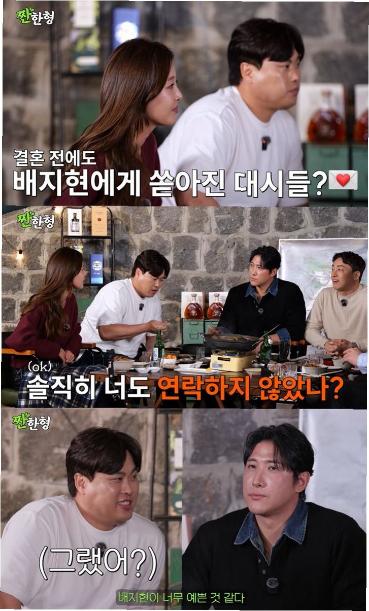 결혼 전 선수들에게 대시를 많이 받았을 것 같다는 질문에 배지현은 황재균을 향해 '솔직히 너도 연락하지 않았나?'라고 폭로했다. 이에 류현진은 놀라 젓가락을 떨어뜨리며 '뭐라고?'라고 반응했고, 배지현은 황재균이 '배지현이 너무 예쁜 것 같다'고 했다고 덧붙여 현장을 술렁이게 했다. 황재균은 '기억은 하는데 조용히 해라, 친구야'라고 수습하려 했지만, 류현진은 '8년 만에 안 사실'이라며 당황한 기색을 감추지 못했다.