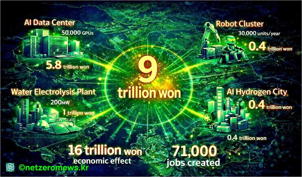 A.AI 데이터센터 설립과 로봇 제조 공장 구축에 집중 투자됩니다. 또한, 새만금의 자연환경을 활용한 친환경 그린 수소 생산 및 공급 계획도 포함되어 있습니다.