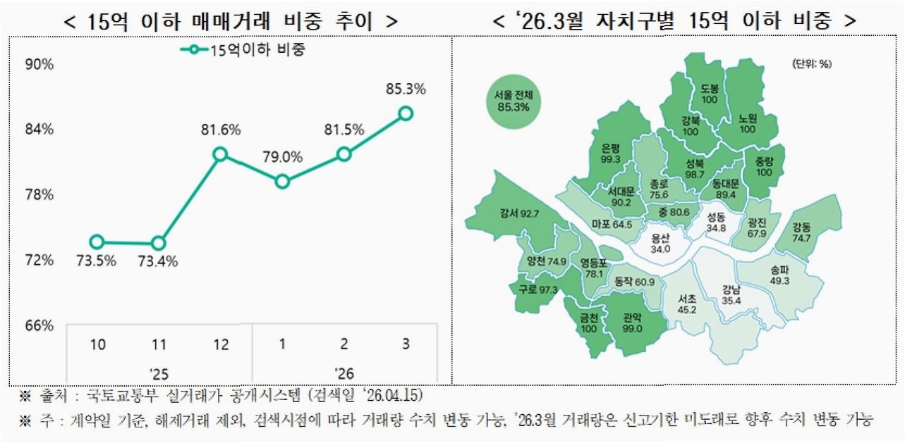 15억원 이하 거래 비중 증가, 실수요자 중심 시장 재편