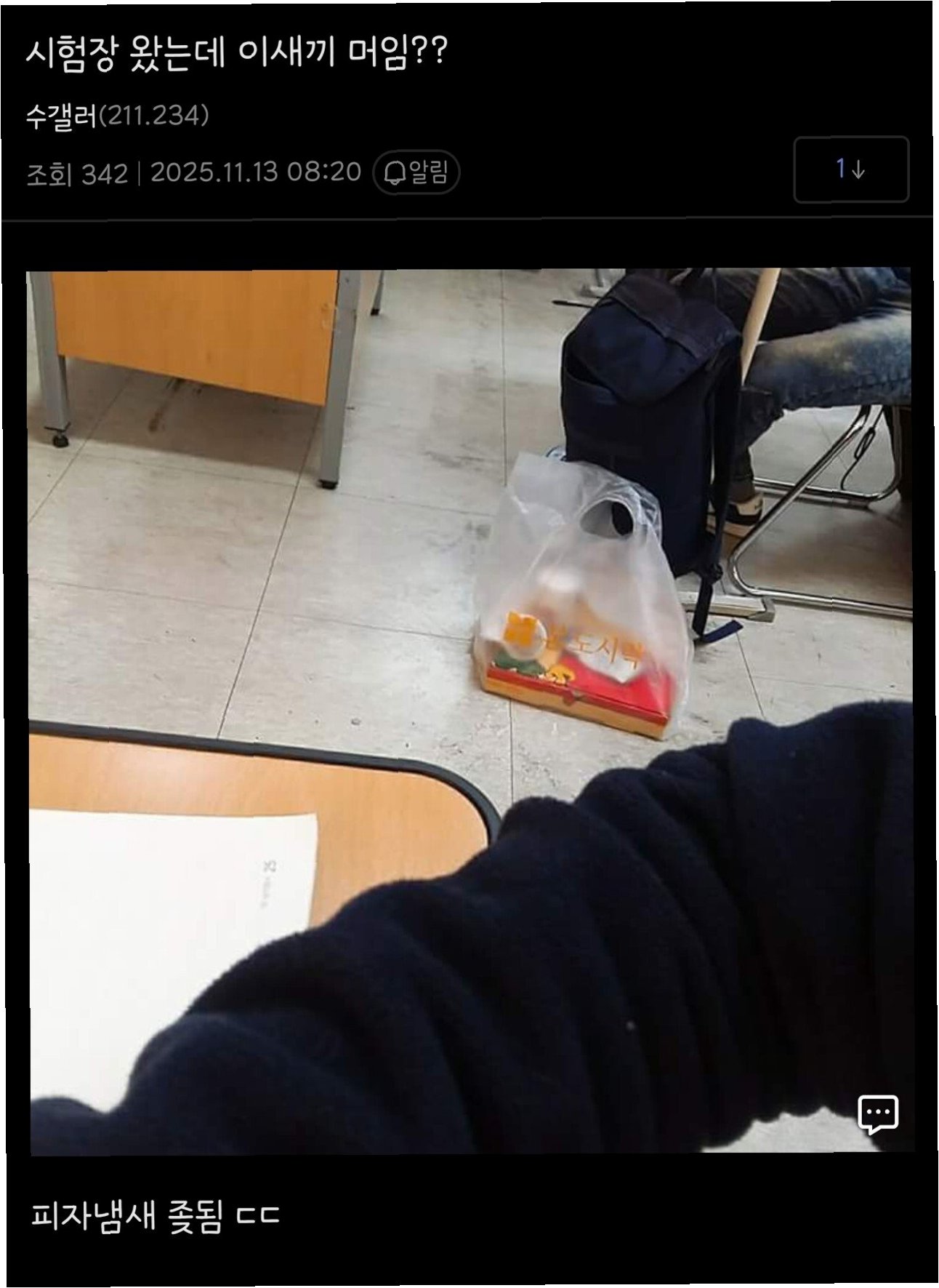 사건의 발단은 한 수험생이 피자 박스로 추정되는 도시락을 가져오면서 시작되었습니다. 온라인 커뮤니티에 올라온 사진 속에는 ‘본도시락’ 비닐봉지 안에 담긴 종이 상자가 보였고, 이를 본 게시글 작성자는 피자 냄새가 심하다고 불만을 토로했습니다. A 씨는 “피자 냄새 정말 끔찍하다”, “피자 냄새 심하다”라고 적으며 옆자리 수험생의 도시락을 문제 삼았습니다. 시험이라는 긴장된 상황에서 예상치 못한 음식 냄새는 다른 수험생들에게 불편함을 줄 수 있다는 우려를 낳았습니다.