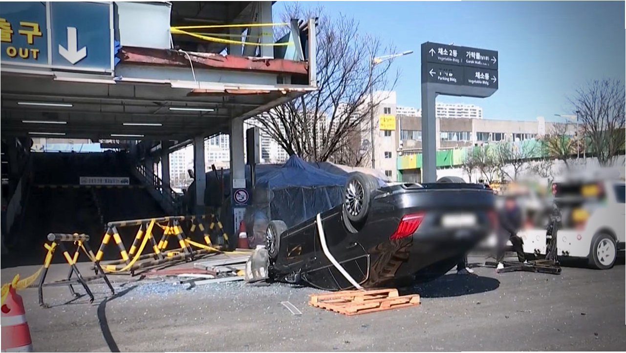 사고 차량은 주차장 2층에서 난간을 뚫고 1층으로 떨어지며 전복되었습니다. 사고 현장의 난간은 차량 충격으로 완전히 부서져 밖이 훤히 보일 정도였습니다. 60대 남성 운전자는 목 부위 통증을 호소했으나 생명에는 지장이 없는 것으로 알려졌습니다. 시장 손님들은 "고객들이 많이 오가는 곳에서 이런 사고가 쉽게 일어나면 걱정된다"고 입을 모았습니다.