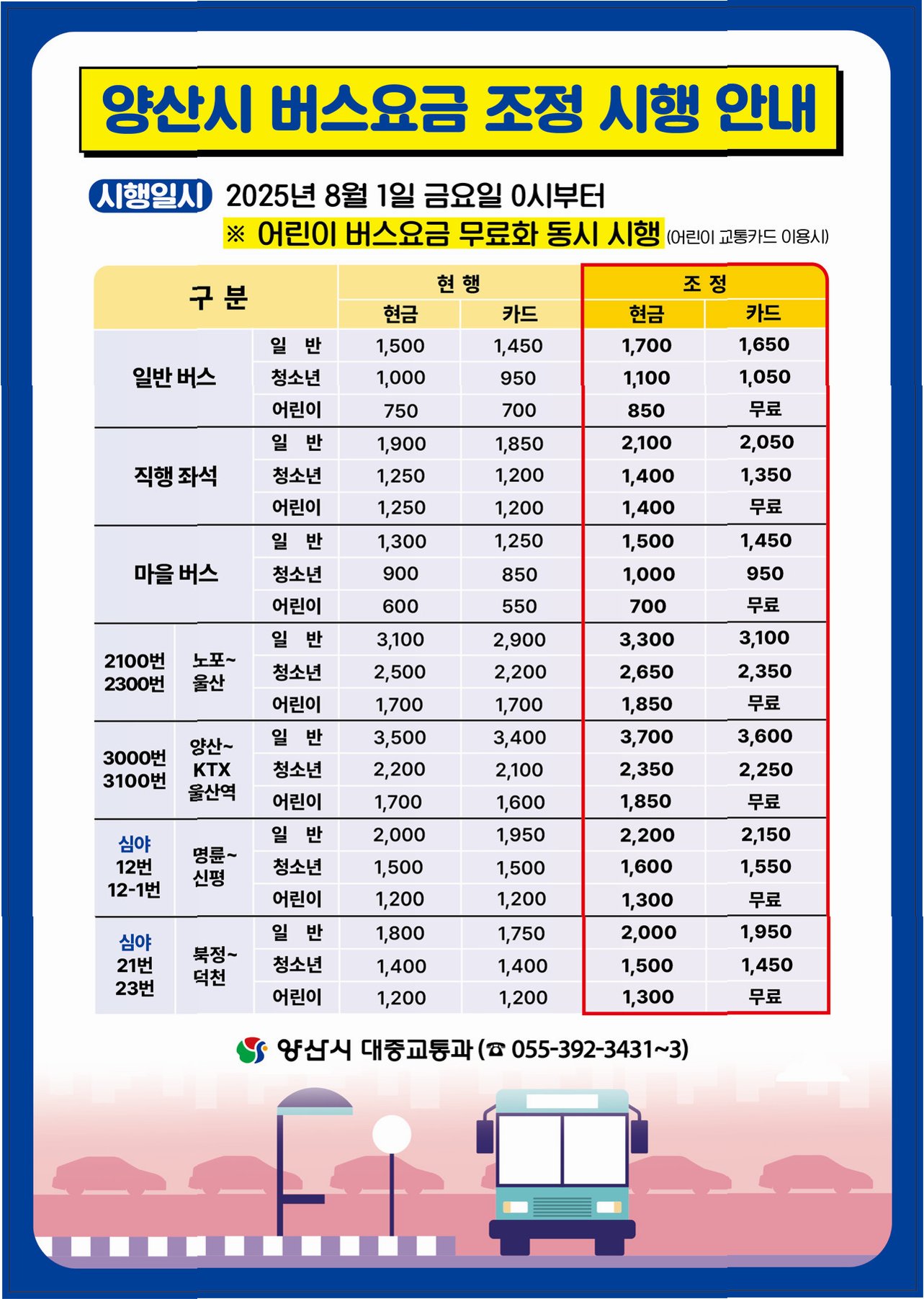 변화의 시작: 양산 시내·마을버스 요금 인상 발표