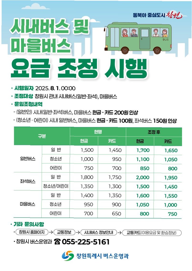 핵심 정리: 양산 시내·마을버스 요금 인상의 의미