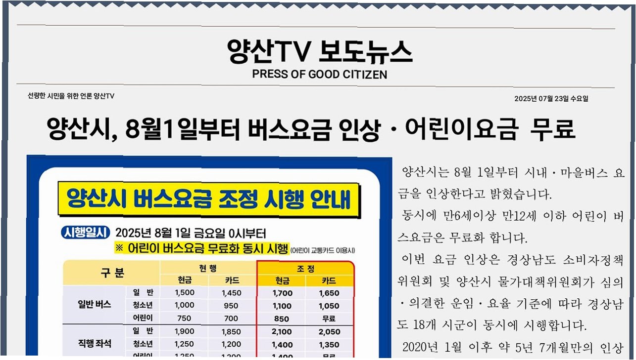 변화의 시작: 양산 시내·마을버스 요금 인상 발표
