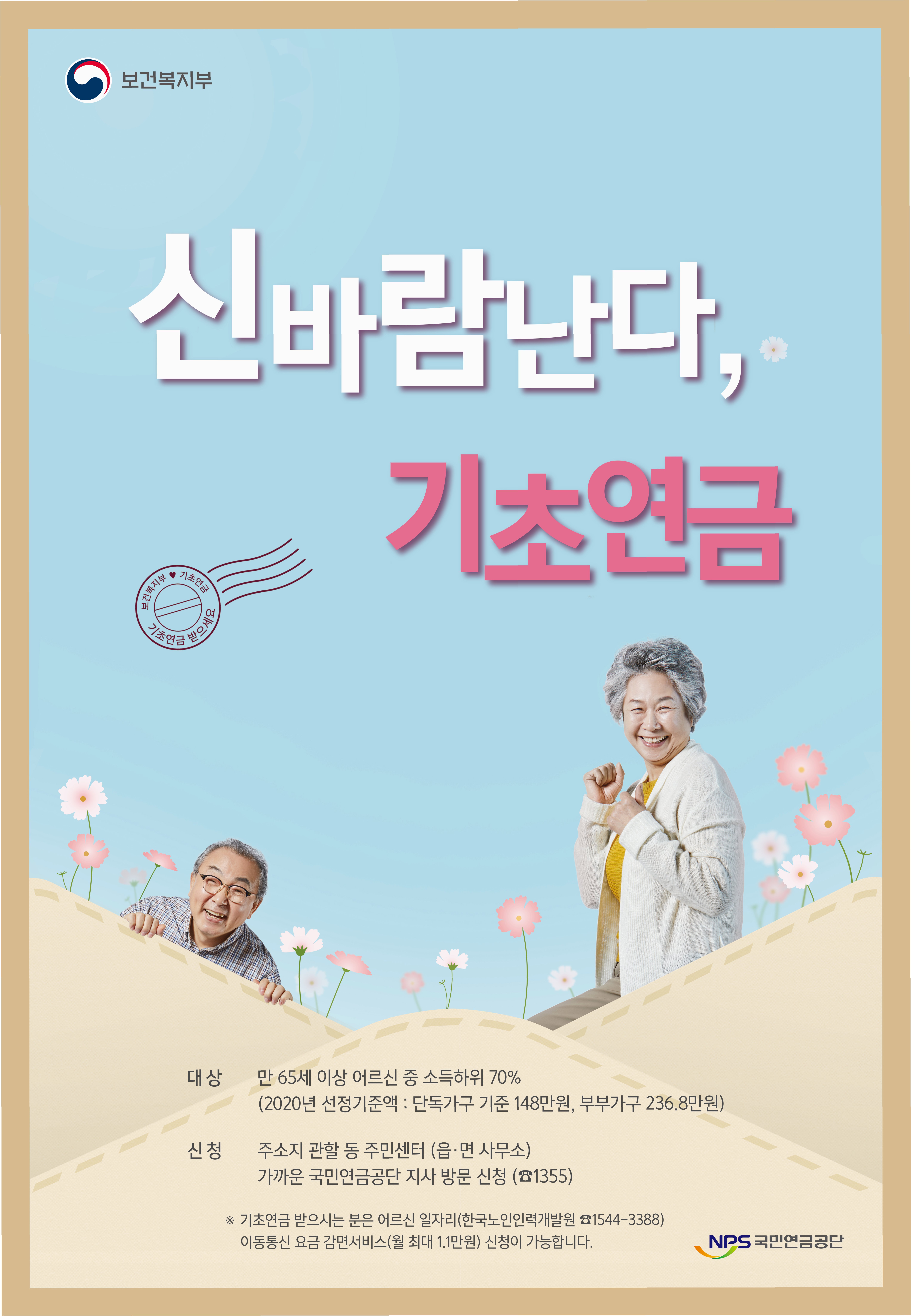 A.만 65세 이상, 소득인정액이 선정기준액 이하인 경우 수급 가능합니다. 단독가구는 247만원, 부부가구는 395만2000원 이하여야 합니다.