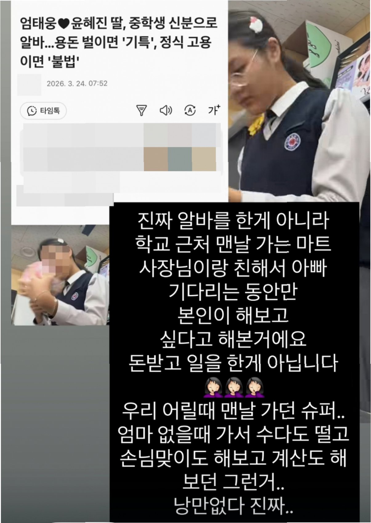 딸의 편의점 알바 논란, 윤혜진 직접 해명 나서