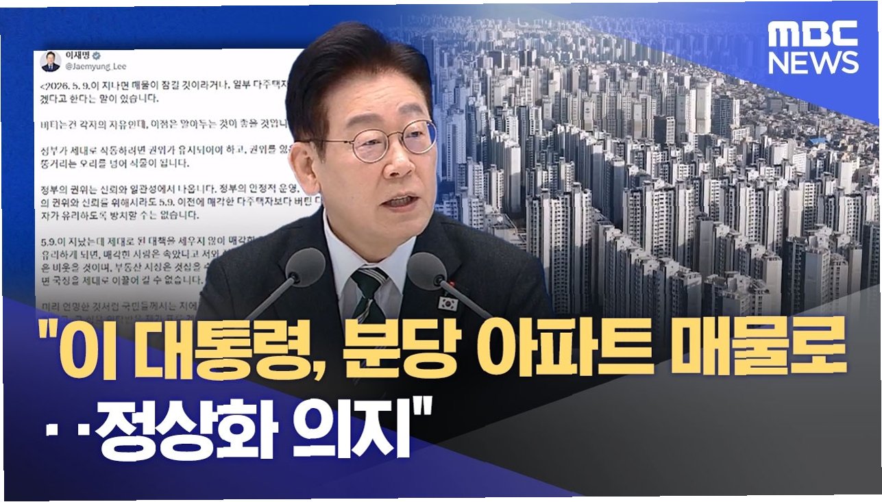 이재명 대통령이 분당 아파트를 매물로 내놓으며 부동산 시장 정상화 의지를 실천으로 보여주었습니다. 이에 야당은 장동혁 국민의힘 대표에게도 과거 약속 이행을 촉구하며 압박 수위를 높이고 있습니다. 조국혁신당 또한 대통령의 결단을 높이 평가하며 정쟁이 아닌 실천을 강조했습니다.