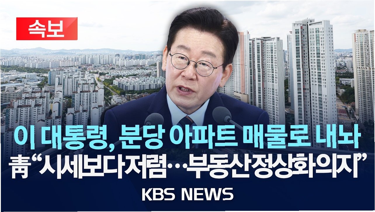 청와대는 이재명 대통령이 김혜경 여사와 공동명의로 소유한 분당 아파트를 시세보다 낮은 가격에 매물로 내놓았다고 밝혔습니다. 현재 임차인이 거주 중이어서 실제 처분은 오는 10월경 이루어질 전망입니다. 이는 부동산 시장 안정화라는 대의를 위한 대통령의 결단으로, 향후 장동혁 대표의 행보에 대한 관심이 집중되고 있습니다.