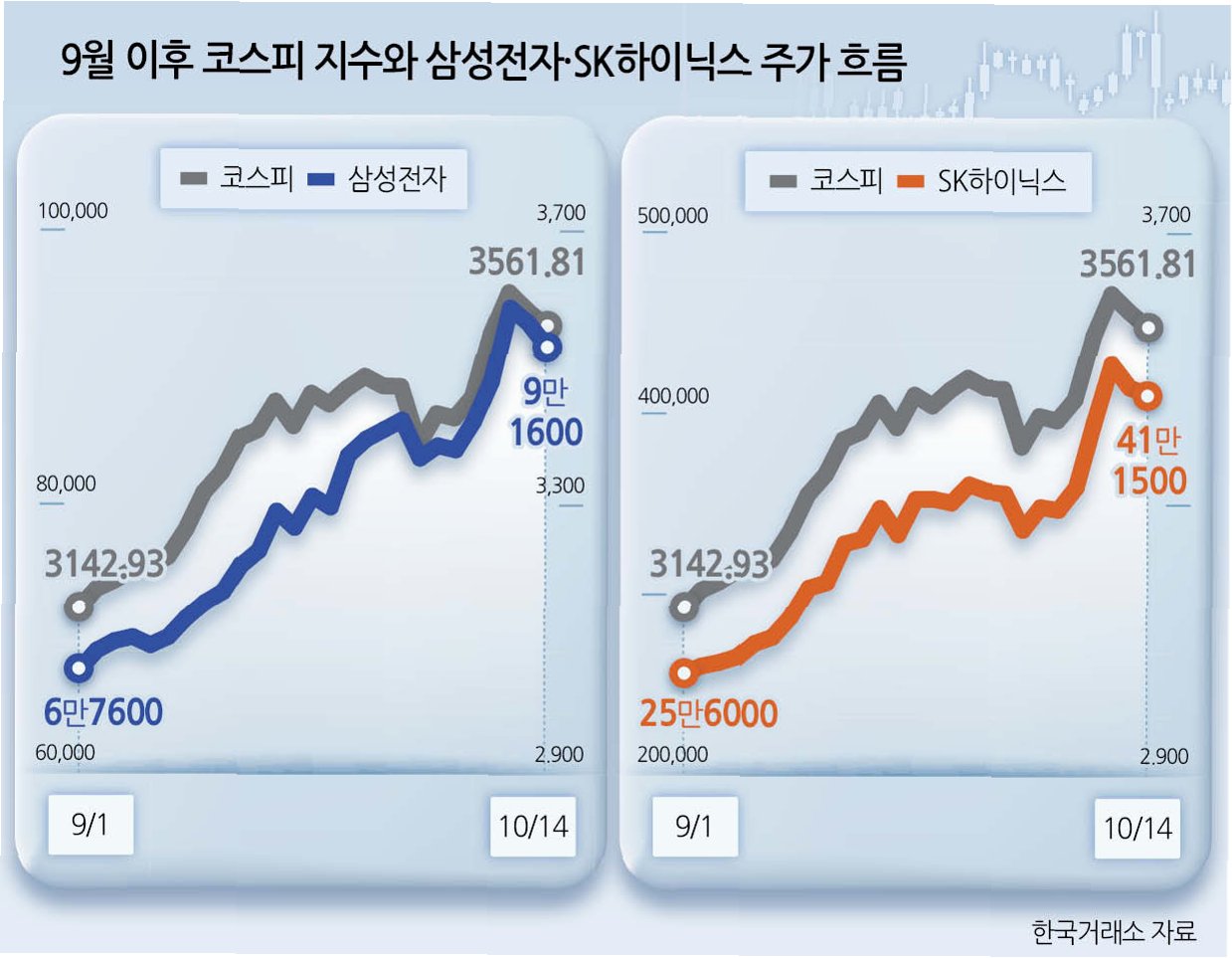 A.삼성전자와 SK하이닉스의 시가총액 증가가 코스피 상승의 주요 원인으로 작용했습니다.