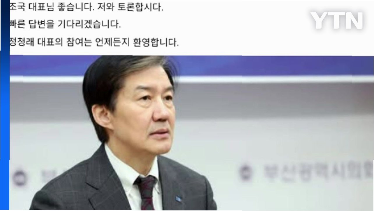 A.장동혁 대표와 조국 후보 모두 정청래 대표의 참여를 긍정적으로 보고 있습니다. 3자 토론도 가능하다는 입장을 밝혔습니다.