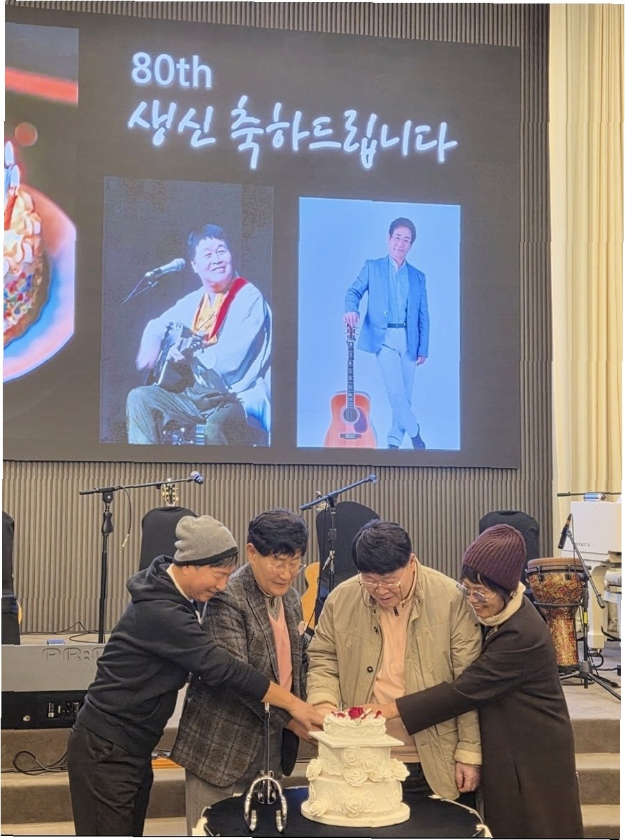 가요계 신년회에서 윤형주, 송창식의 팔순 잔치가 열렸습니다. 이문세, 전영록 등 수많은 가수들이 참석해 즉석 라이브와 함께 추억을 공유하며 훈훈한 시간을 보냈습니다. 통기타 음악의 역사와 문화를 지켜온 선배들에 대한 존경과 감사가 넘치는 자리였습니다.