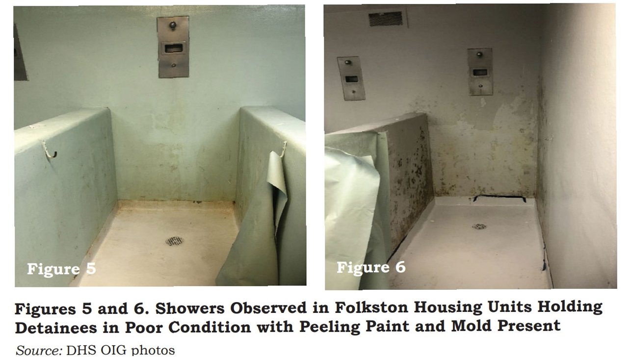 포크스턴 구금 시설은 찢어진 매트리스, 누수, 고인 물, 곰팡이, 낡은 샤워 시설, 환기 시스템의 곰팡이와 잔해, 만연한 벌레, 뜨거운 물 부족, 작동하지 않는 변기 등 상상 이상의 열악한 환경을 보여줍니다. 이러한 환경은 수감자들의 건강과 안전을 심각하게 위협하며, 기본적인 인권조차 보장받지 못하는 현실을 드러냅니다. 2021년 11월 DHS 감사 보고서는 이러한 문제점들을 상세히 지적했습니다.
