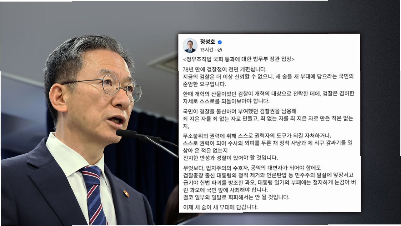 정성호 법무부 장관, 검사 신분 보장 의문 제기…검찰 개혁 논의 '주목'