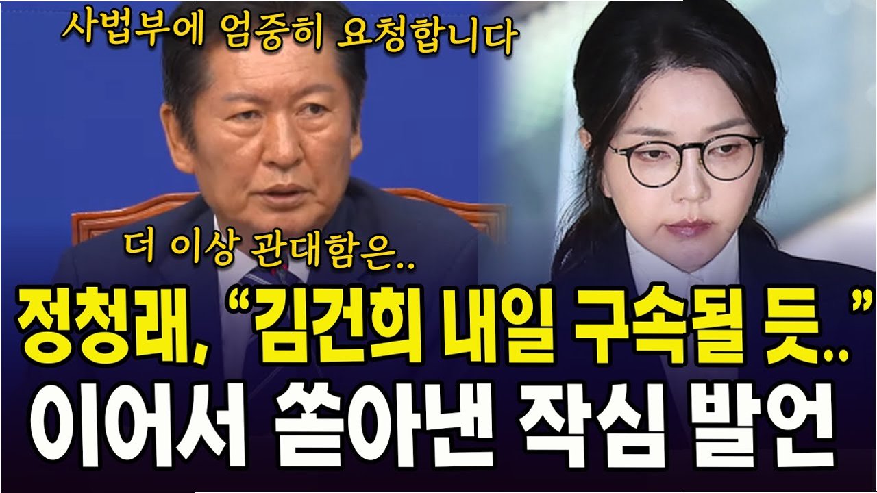 정 대표는 사법부를 향해 윤석열, 김건희 부부에 대한 더 이상의 관대함은 없어야 한다고 말했다. 그는 상식적인 사법부의 판단을 기대한다고 덧붙였다.