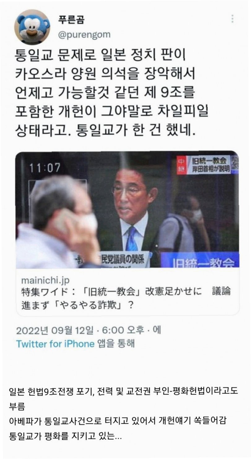 아베 사망 이후, '섭리적 의인'으로 묘사된 하기우다