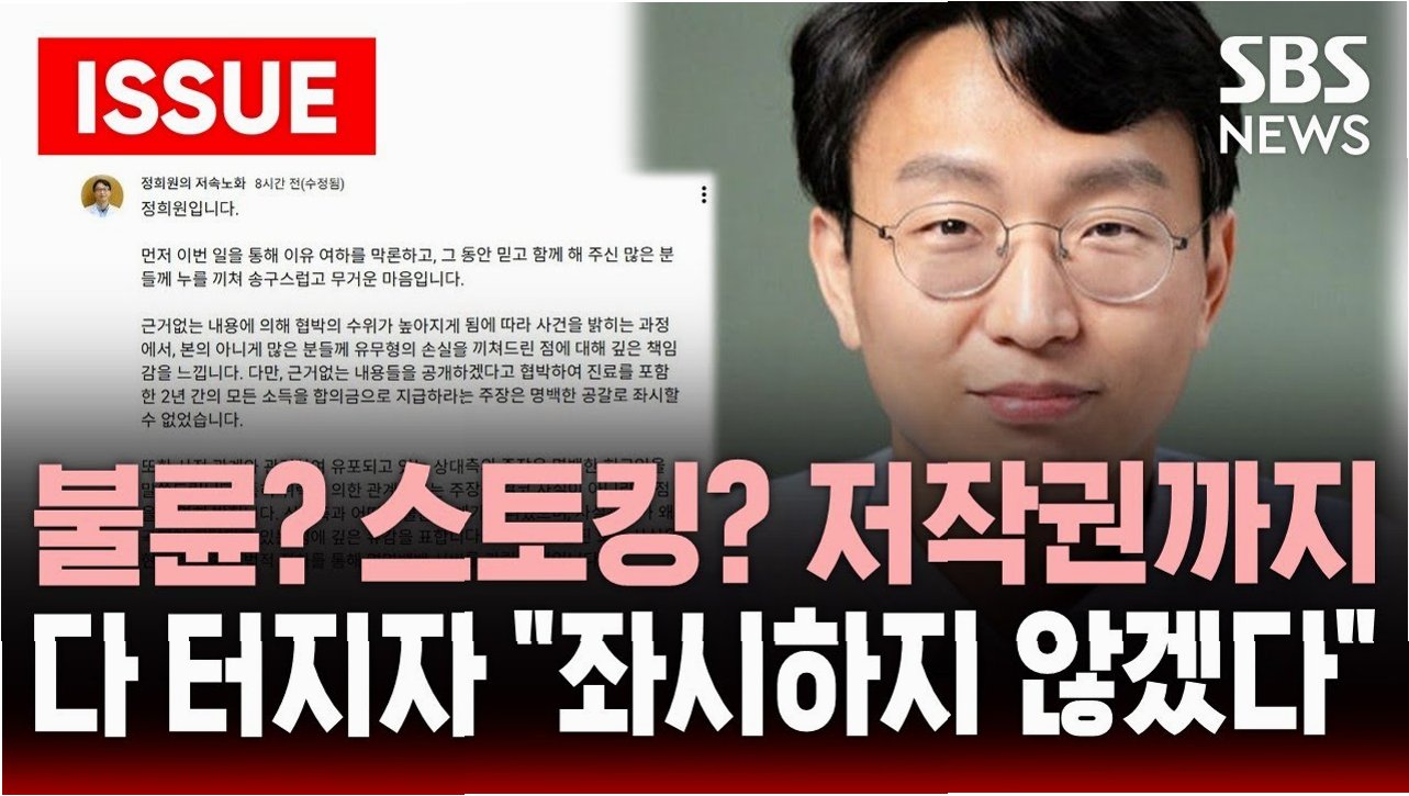 ‘저속노화’ 개념으로 유명한 정희원 저속노화연구소 대표(전 서울아산병원 노년내과 교수·현 서울시 건강총괄관)가 전 서울아산병원 연구원 A씨와의 불륜 의혹에 대해 정면으로 반박하며, 사건의 본질이 사생활 폭로를 빌미로 한 공갈 및 스토킹이라고 주장했습니다. 정 대표는 자신의 유튜브 채널 커뮤니티를 통해 A씨가 근거 없는 내용들을 공개하겠다고 협박하며 진료를 포함한 2년간의 모든 소득을 합의금으로 요구했다고 밝혔습니다. 이에 대해 정 대표는 “좌시할 수 없었다”고 강경한 입장을 표명했습니다.