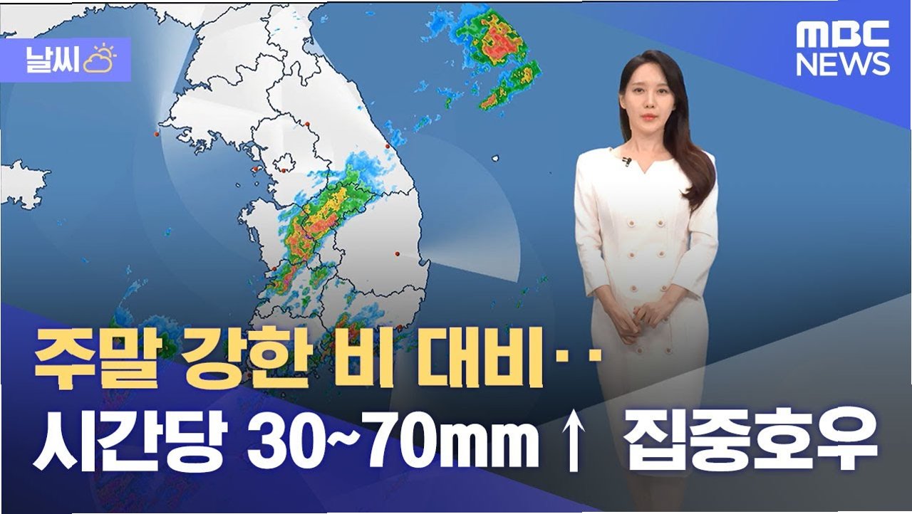 이번 주말, 중부와 호남 지역에는 강한 비가 예상됩니다. 특히 밤부터 시간당 30~50mm의 집중 호우가 쏟아질 수 있으니, 안전에 유의하시기 바랍니다. 다음 주 금요일에는 수도권과 강원 영서 지역에 다시 비 소식이 있습니다. 최신 기상 정보를 확인하고, 안전 수칙을 준수하여 안전한 주말을 보내세요!
