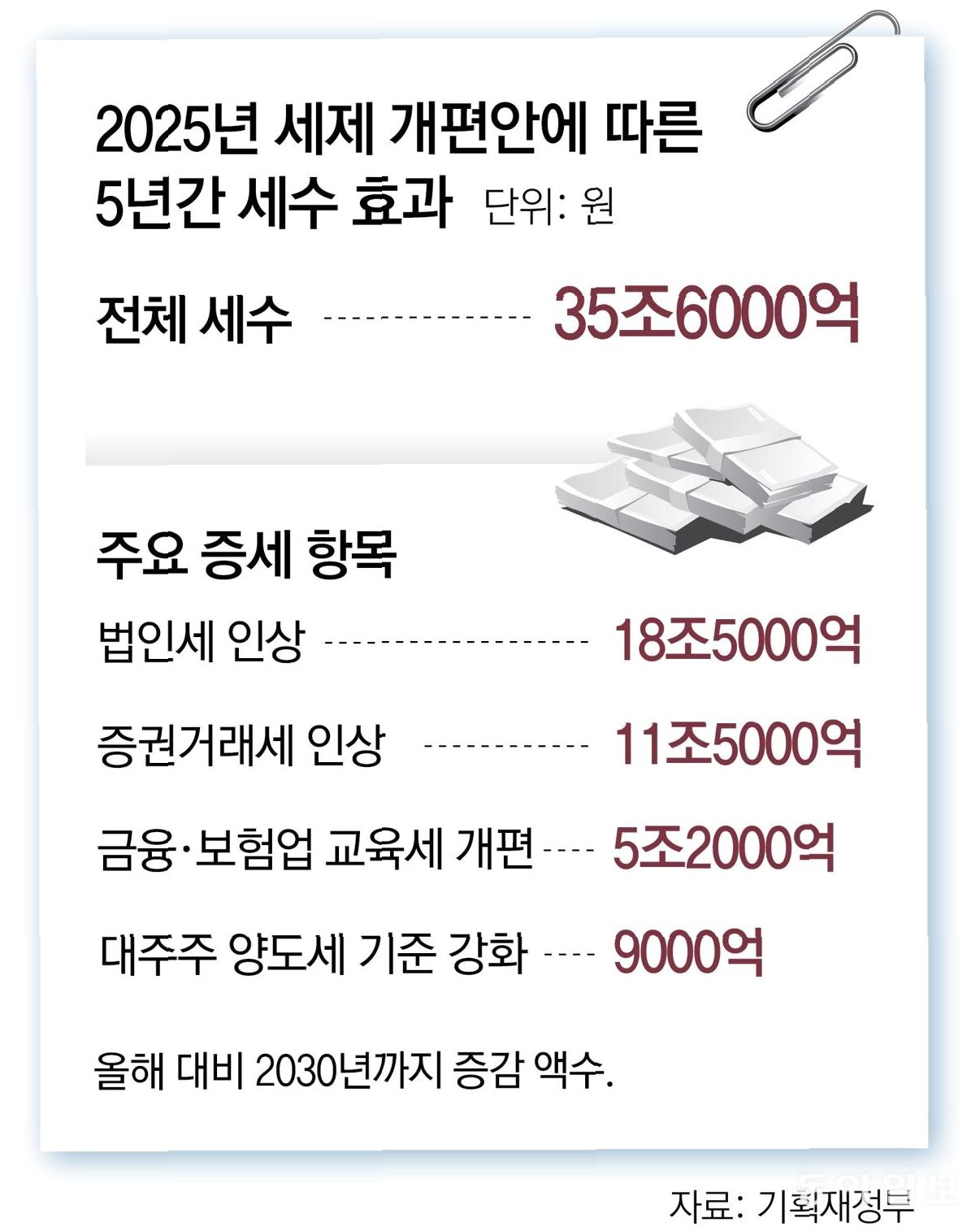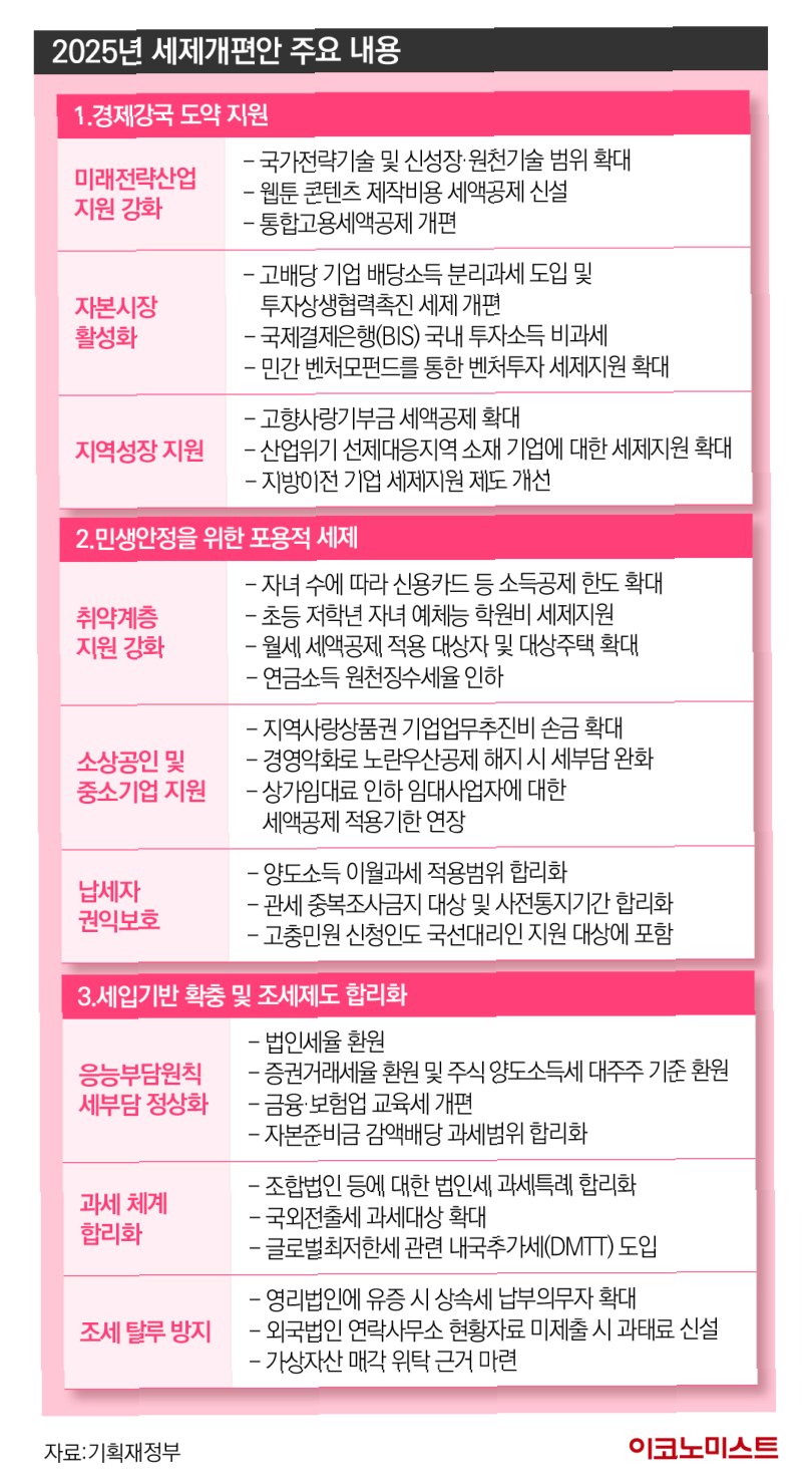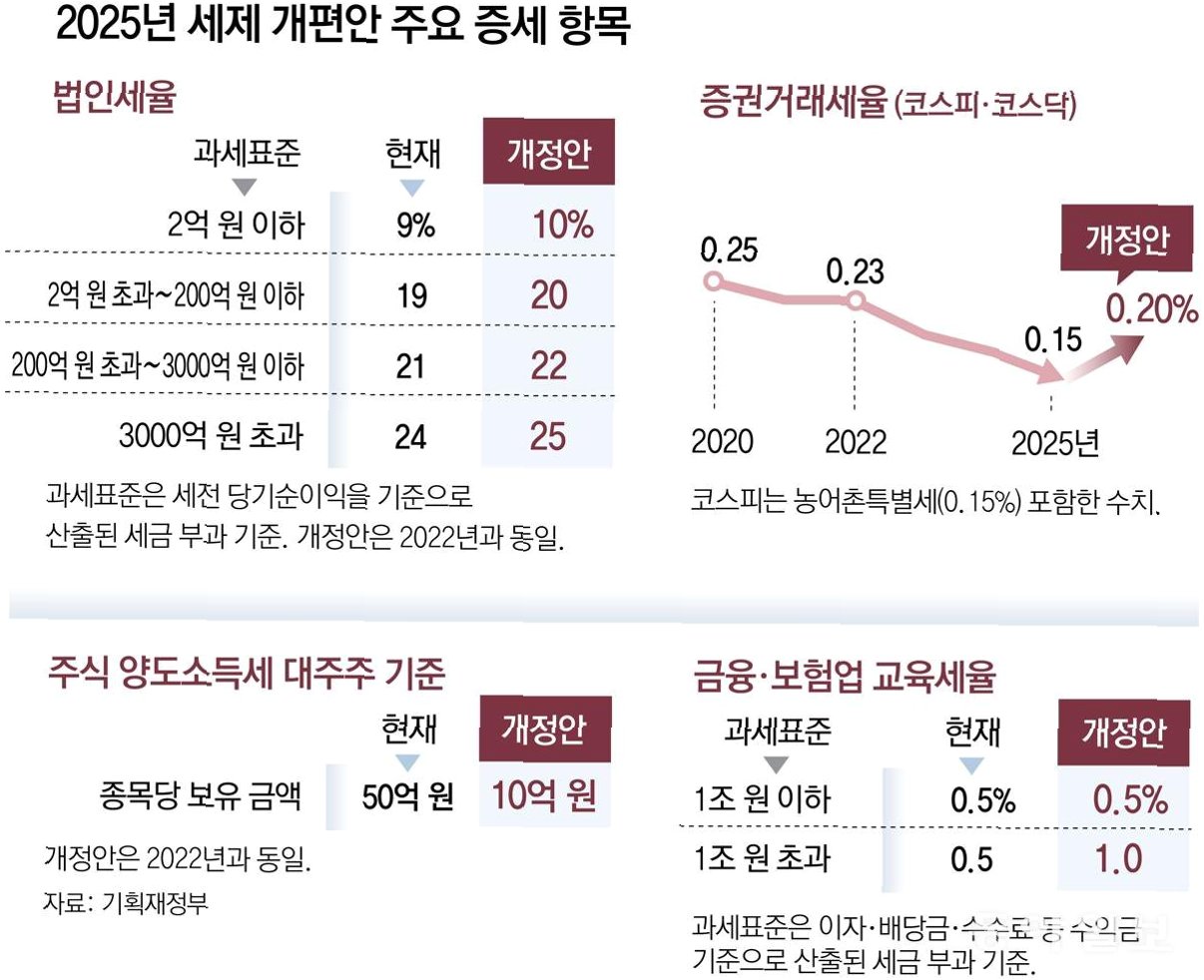 핵심 내용: 대주주 기준 강화, 법인세 인상, 증권거래세 인상