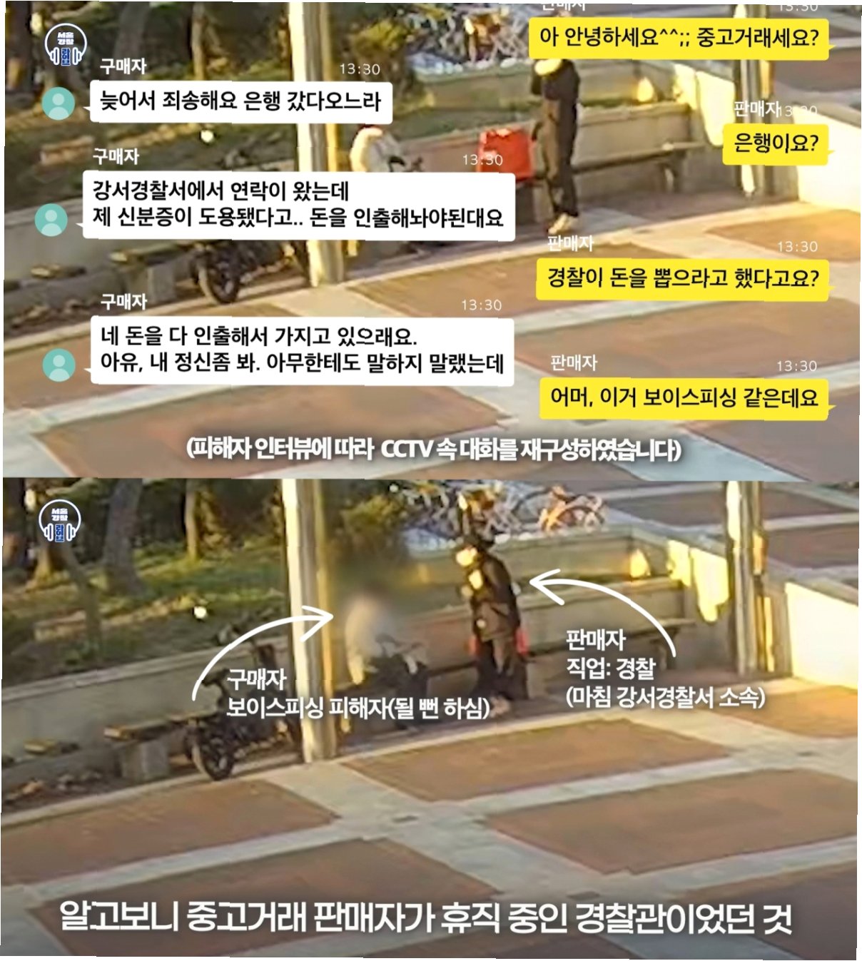 구매자의 말을 들은 판매자는 직감적으로 보이스피싱임을 눈치챘습니다. 그는 망설임 없이 '보이스피싱 같다'며 '본인이 강서경찰서 경찰관'이라고 밝혔습니다. 놀랍게도 판매자는 실제로 강서경찰서 소속 경찰관이었고, 휴직 중인 상태였습니다.
