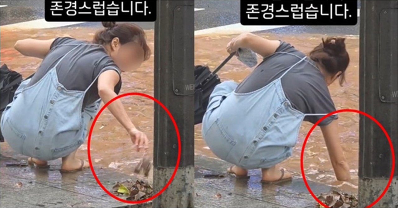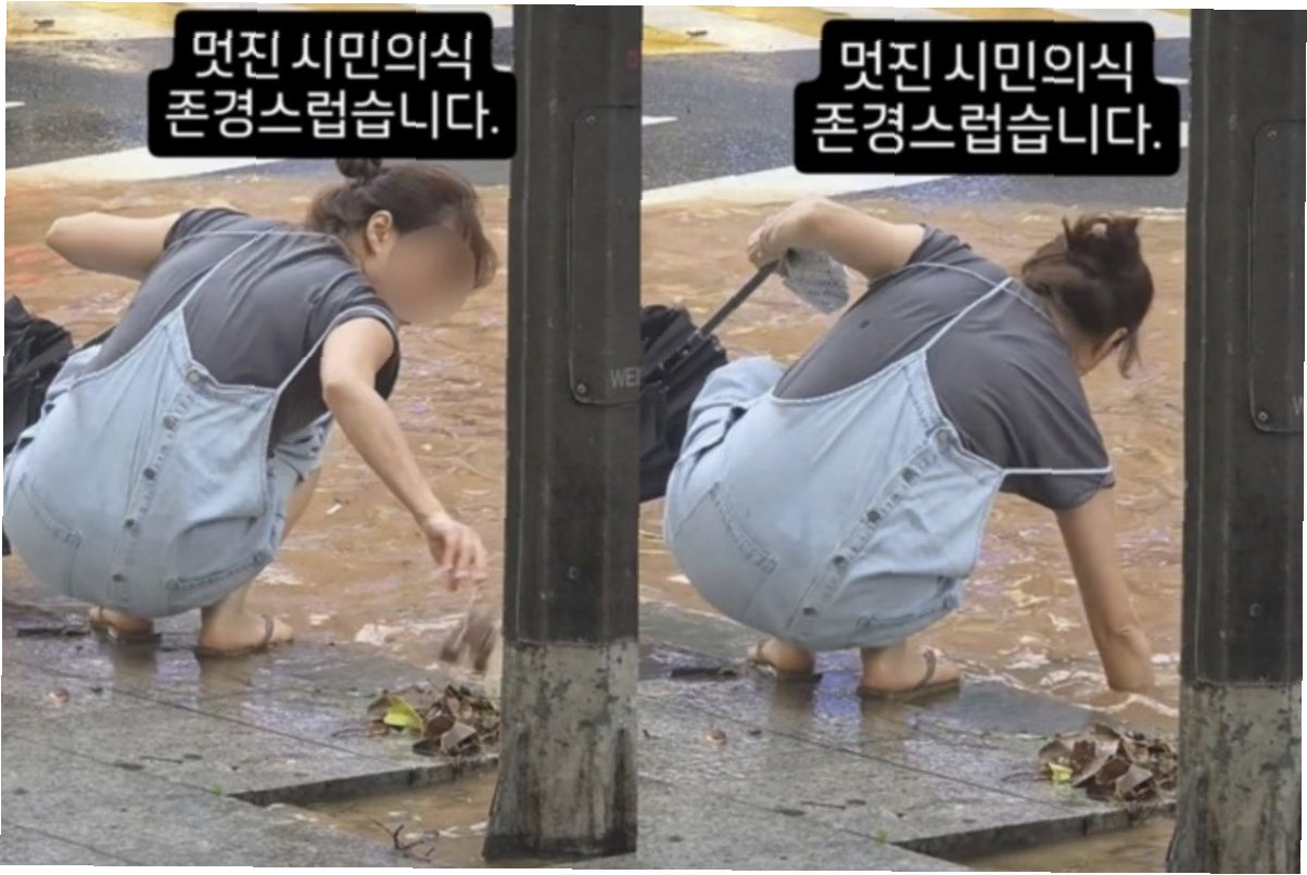 영상 속 화정역 인근 도로는 집중 호우로 인해 흙탕물로 뒤덮여 있었습니다. 배수구가 막혀 빗물이 제대로 빠져나가지 못하면서, 도로 곳곳이 침수된 상황이었죠. 이런 절망적인 상황 속에서, 한 여성의 용감한 행동은 마치 한 줄기 빛과 같았습니다. 그녀는 쪼그려 앉아 침수된 도로 속에 손을 넣고, 막힌 배수구를 뚫기 위해 묵묵히 작업을 시작했습니다. 왼손에는 우산과 가방을 든 채, 오른손으로 낙엽과 쓰레기 등을 건져 올리며 시민들을 위해 헌신하는 모습은 많은 이들에게 깊은 인상을 남겼습니다.